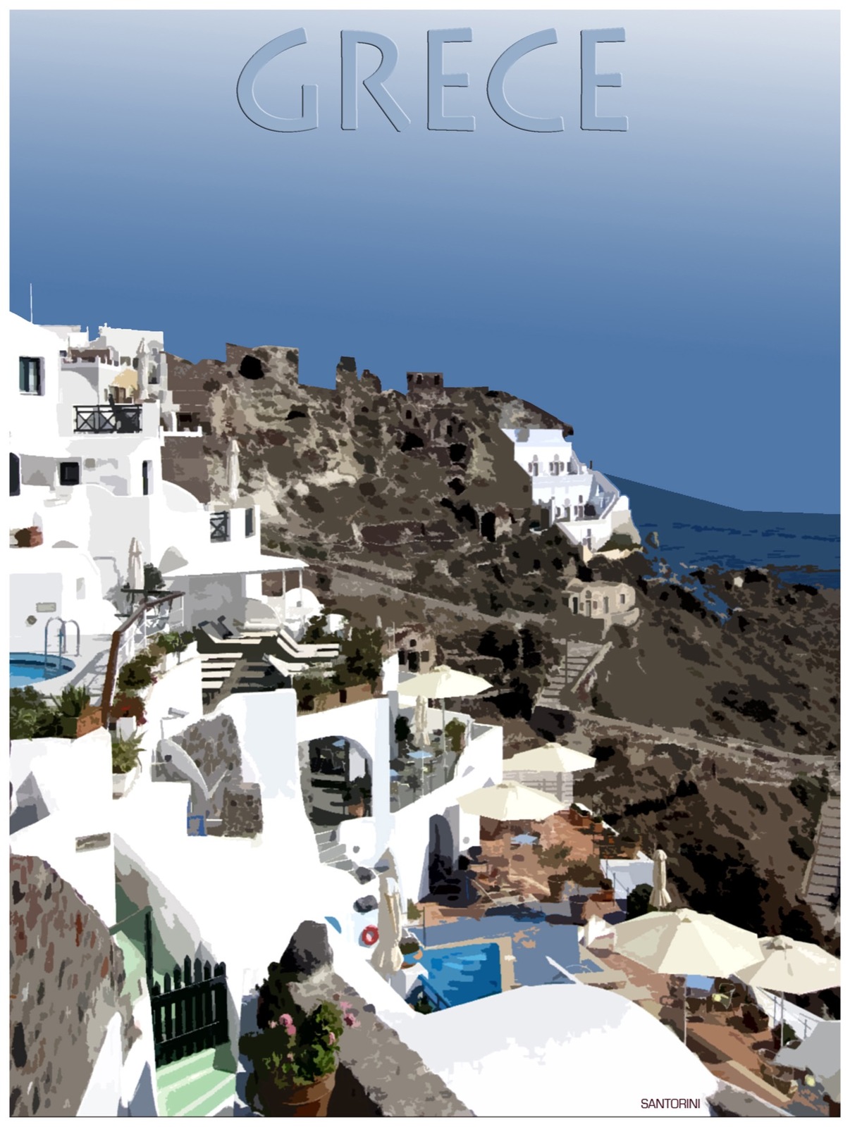 9654.Grece.mountain side view of greek buildings.POSTER.decor Home Office art
