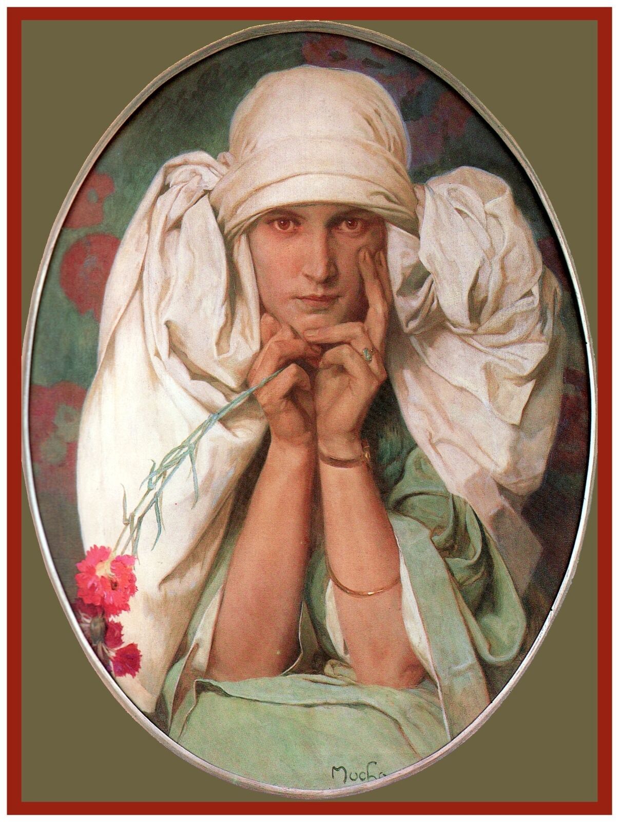 9467.Woman with white sheet on head.flowers in hand.POSTER.decor Home Office art