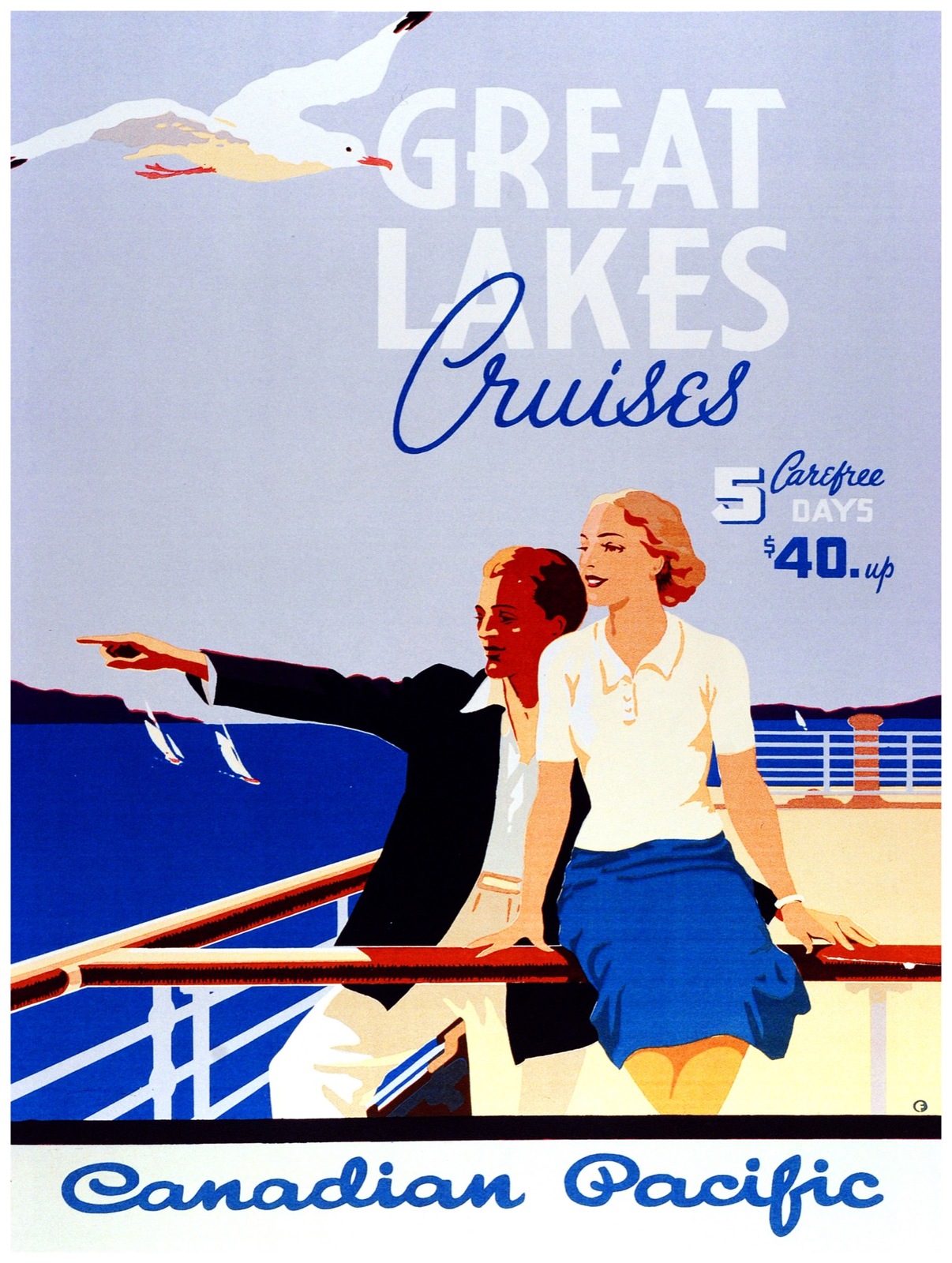7976.Canada pacific.great lakes cruises.couple on deck.POSTER.art wall decor