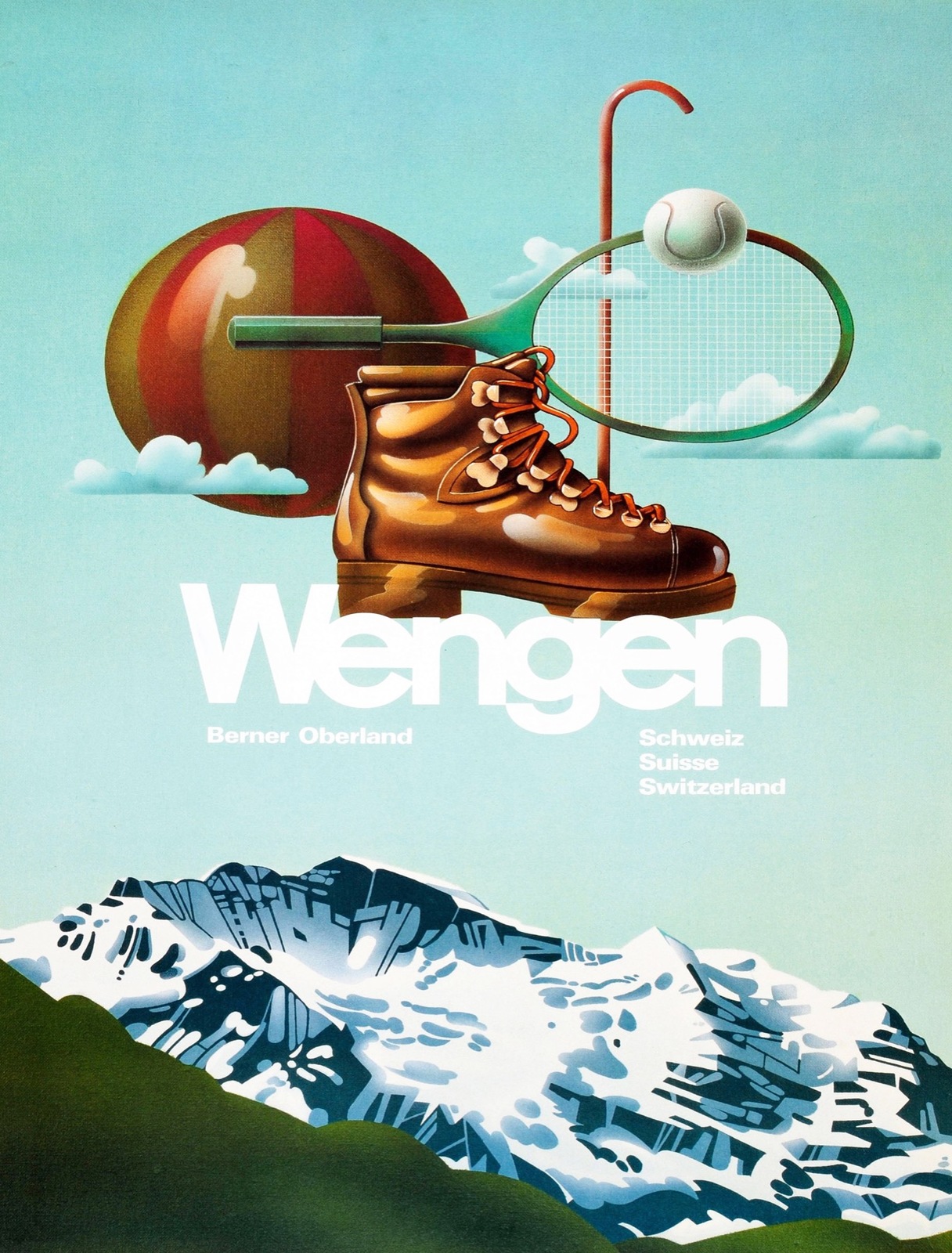 Decorative POSTER.Home room Interior art design.Wengen Ski resort.Tennis.7087