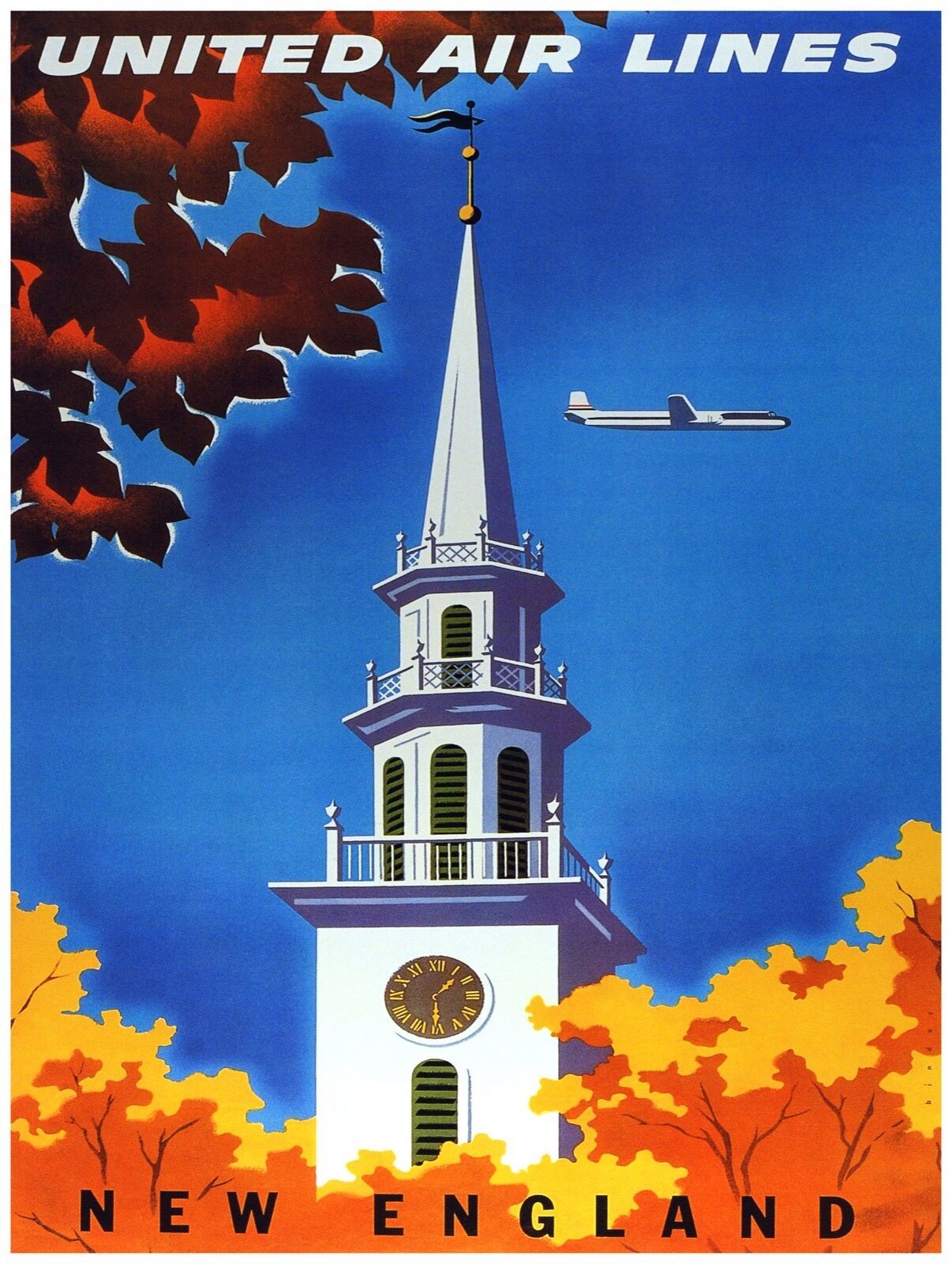 9947.Decoration Poster New England airplane travel.Home room decor graphic art