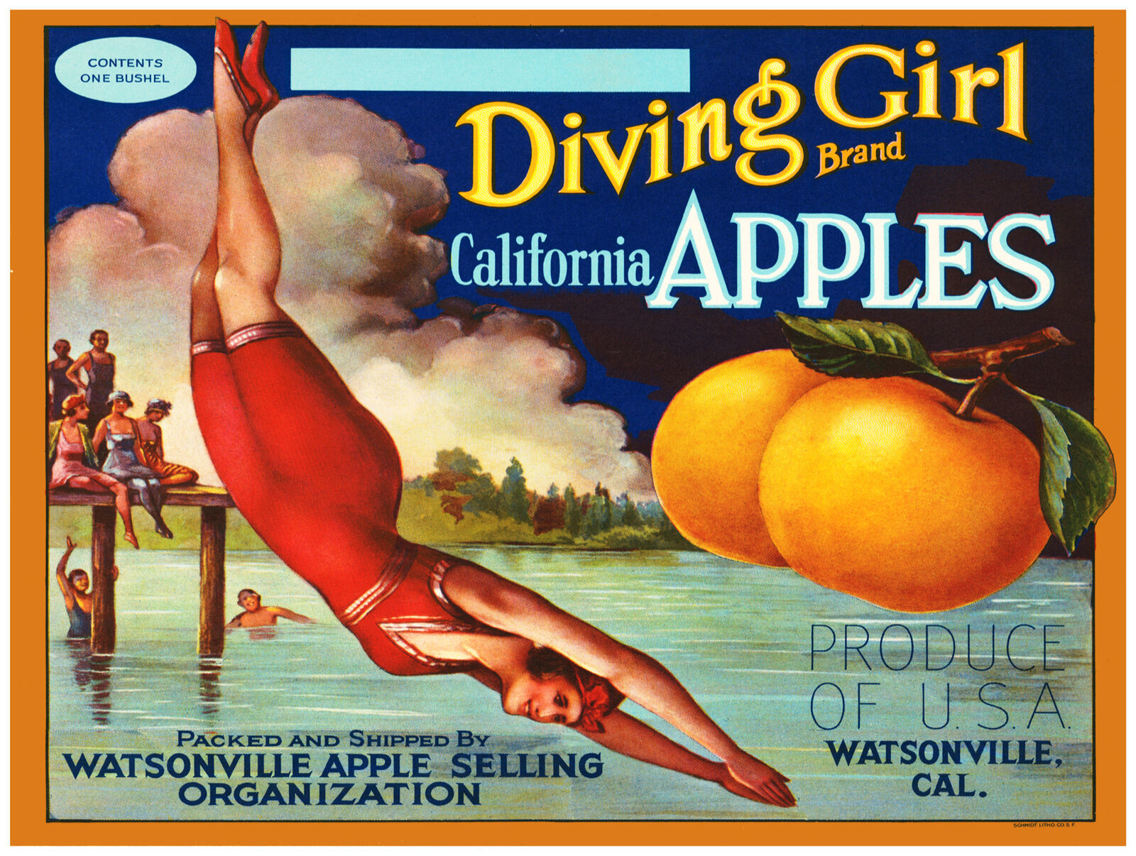 8843.Diving girl brand.california apples.POSTER.art wall decor graphic art