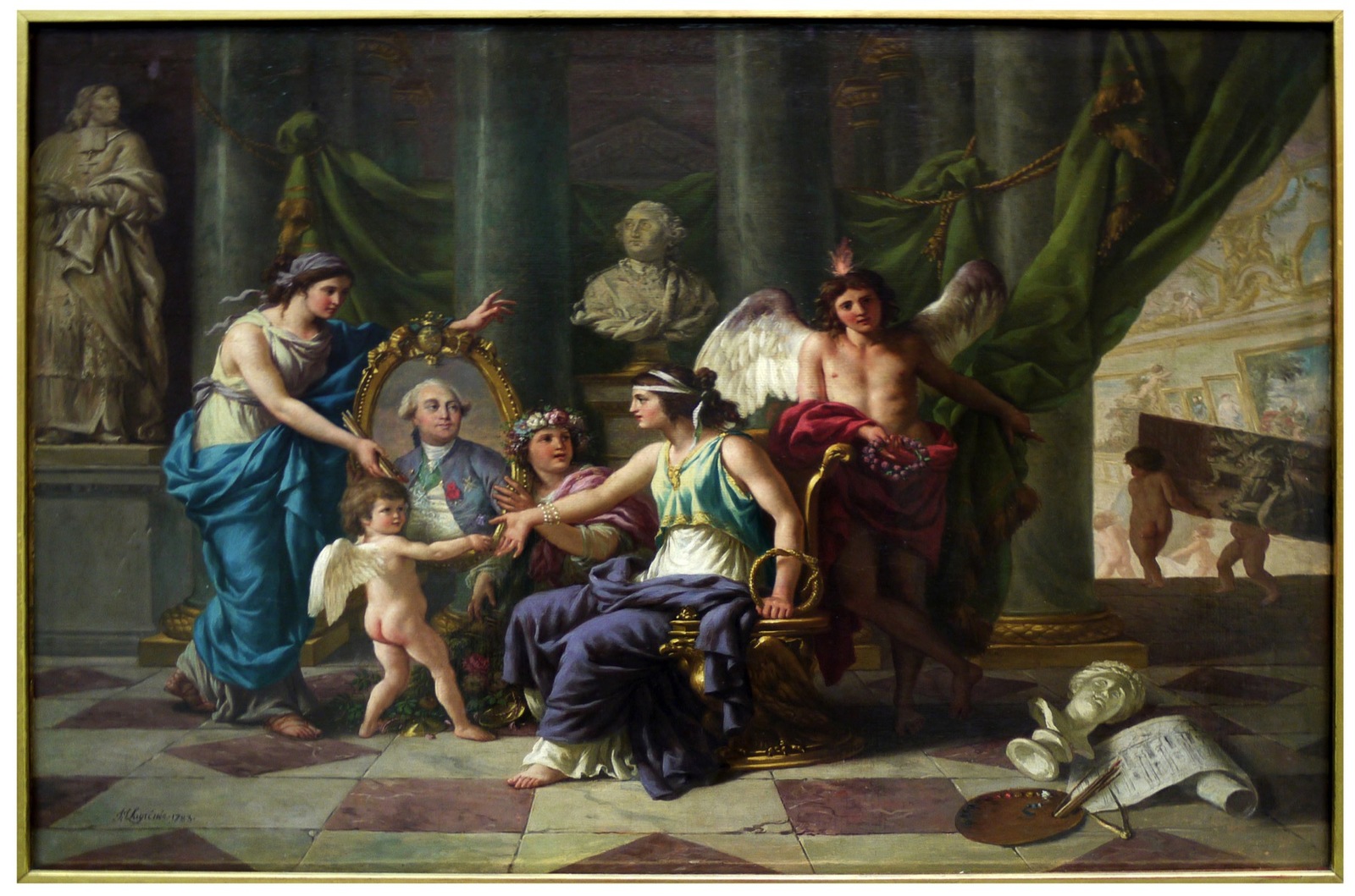 9396.Woman looking at portrait of dressed man.POSTER.decor Home Office art