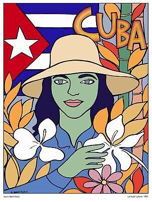 7655.Decoration Poster.Home Room wall design print.Cuban woman flowers and flag