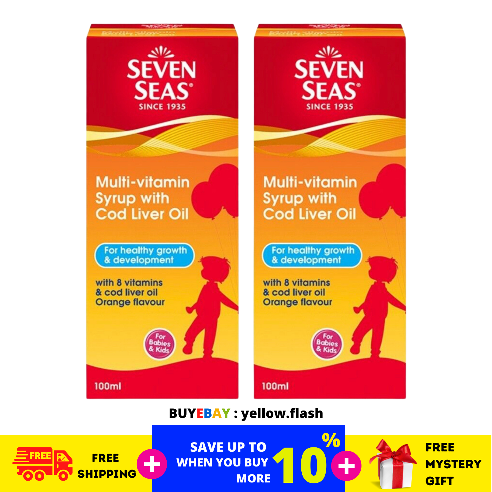 Sciroppo multivitaminico Seven Seas da 2 bottiglie con olio di fegato di merluzzo da 100 ml per neonati e bambini