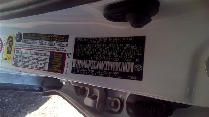 This part was removed from a 2012 CAMRY with 172000 miles on it. This part has been fully tested while installed and will go through our industry leading quality control inspection before shipping.