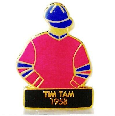 This a 1" metal lapel pin, in MINT Condition, featuring the Red with two Blue stripes on the sleeves Jockey Silks of the Calumet Farm and worn by the 1958 Kentucky Derby Winner, TIM TAM. FREE packaging and First Class Postage shipping in the U.S.A. International Postage cost will be determined by the Country of the Buyer. If you buy more than one item please pay for all the items with one combined payment rather than paying for each item individually.