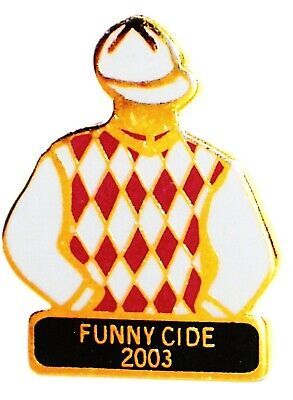This a 1" metal lapel pin, in MINT Condition, featuring the Maroon Grey Jockey Silks of the Sackatoga Stable and worn by the 2003 Kentucky Derby winner, FUNNY CIDE. FREE packaging and First Class Postage shipping in the U.S.A. International Postage cost will be determined by the Country of the Buyer. If you buy more than one item please pay for all the items with one combined payment rather than paying for each item individually.