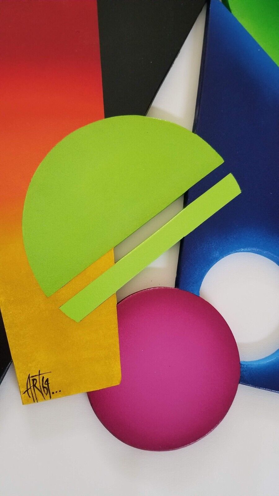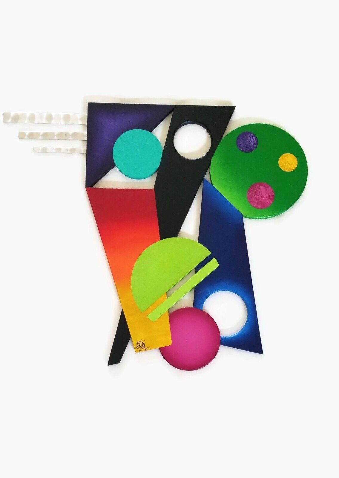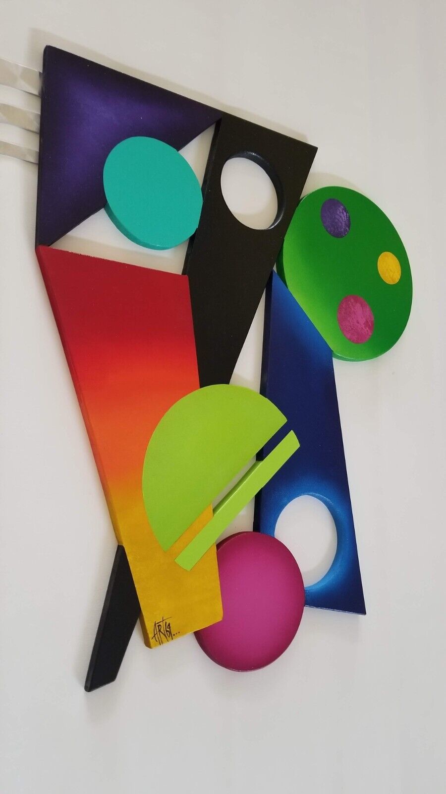 Colorful Contemporary Modern Abstract Wall sculpture, Wood Metal, 28x24 Art69