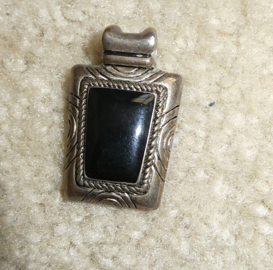 Vintage Silver Tone Metal Signed with Black Rhinestone Pendant 1 1/8" Wide