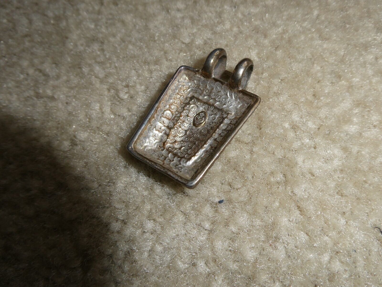 You are bidding on a cool, circa 1970s era, hard to tell, looks older, some kind of wreath and crown very small logo on back, silver tone metal with black unknown content rhinestone center, pendant in the picture. 1 1/8 inches wide. Nice shape with very some light use, could use a polishing. Zoom in for condition.