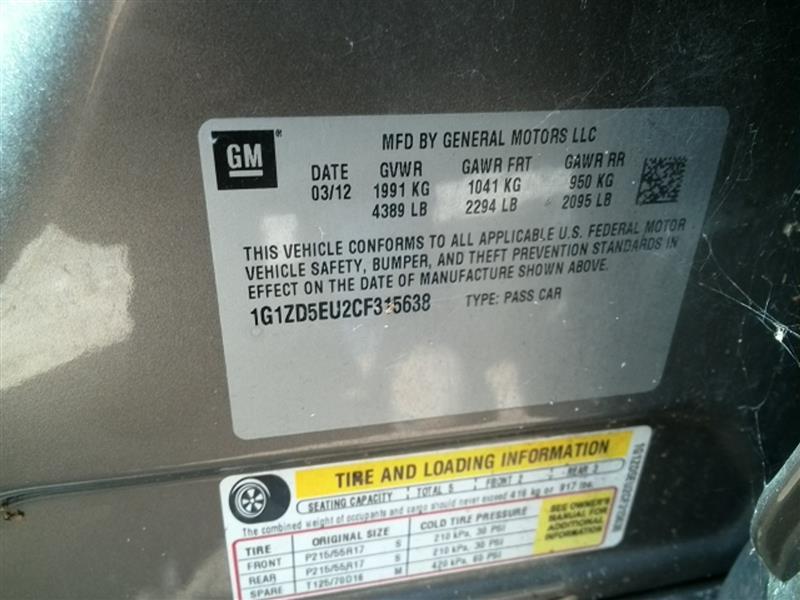 This part was removed from a 2012 MALIBU with 162000 miles on it. This part has been fully tested while installed and will go through our industry leading quality control inspection before shipping.