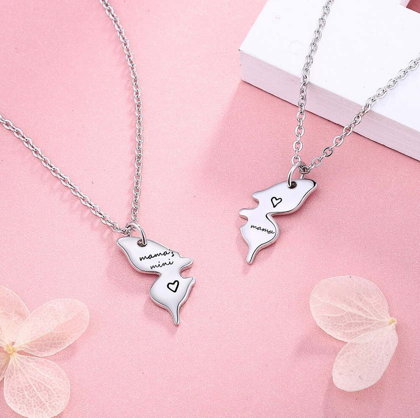 Exquisite 925 Sterling Silver Mother & Daughter Puzzle Engrave Butterfly Pendant