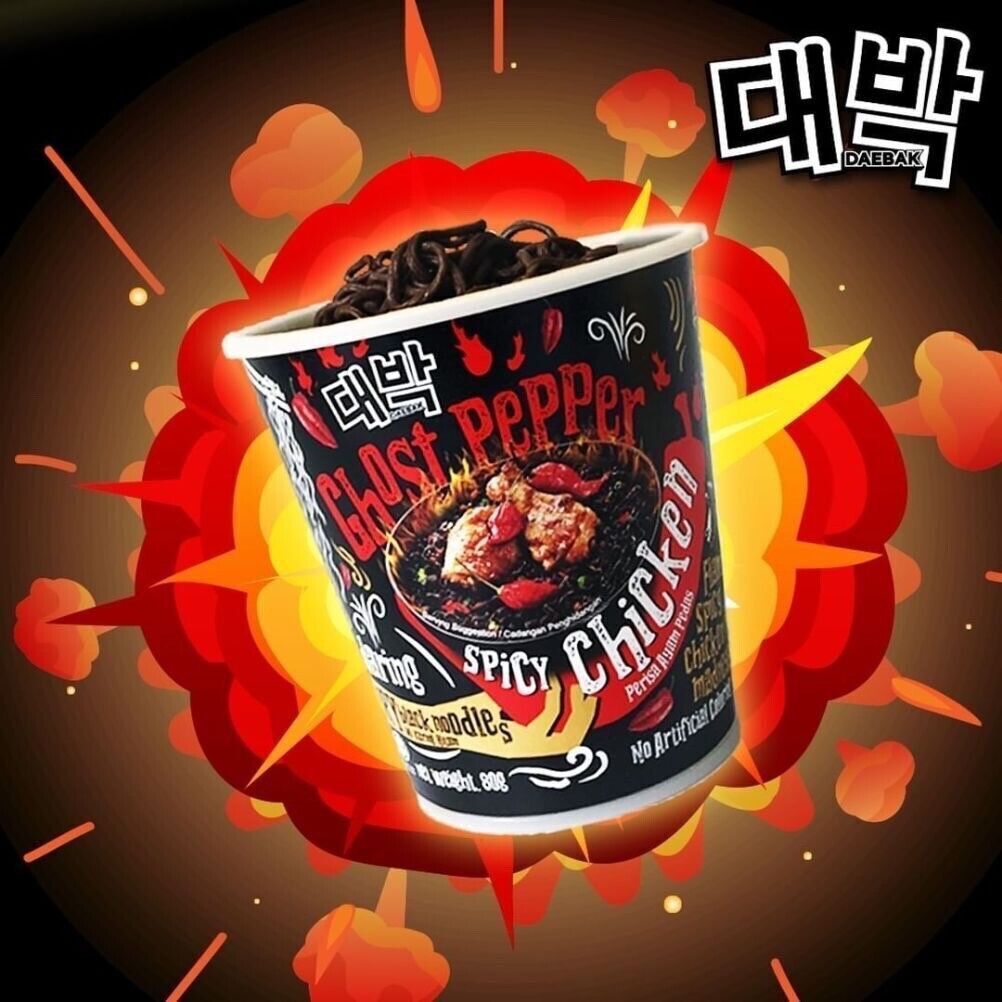 Vi presentiamo le tagliatelle a tazza di pollo piccante Ghost Pepper di Daebak Noodles, autoproclamate come le tagliatelle istantanee piรน piccanti indiscutibili in assoluto in tutta la Malesia.