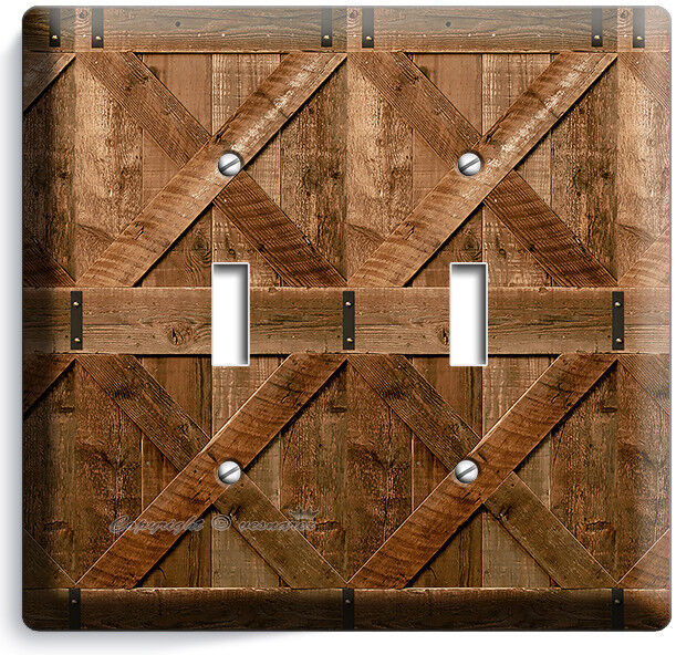 RUSTIC WOOD RANCH BARN DOOR DOUBLE LIGHT SWITCH WALL PLATE LOG CABIN ROOM DECOR