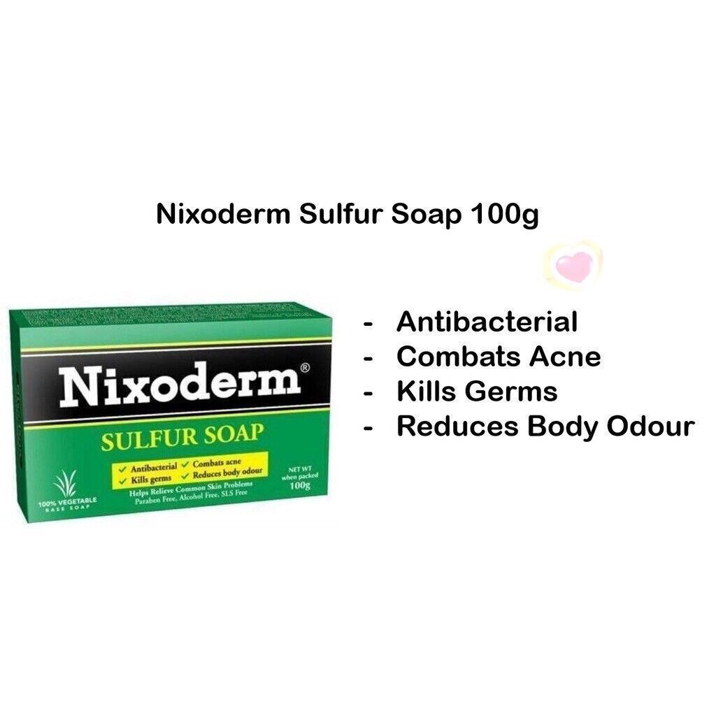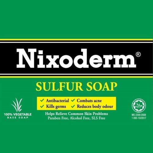 Nixoderm Sulphur Soap Nixoderm Sulphur Soap e appositamente formulato con il 10% di zolfo precipitato per proteggere la pelle dalle infezioni batteriche. Lo zolfo ha proprieta antibatteriche che lo rendono efficace nel trattamento di condizioni della pelle come acne e protuberanze uccidendo i germi. Aiuta a prevenire l'ostruzione dei pori, allevia i brufoli su viso e corpo e protegge il corpo dai cattivi odori.