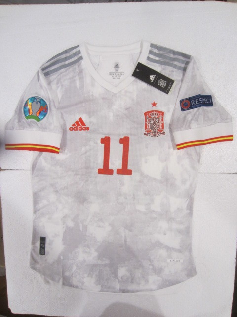 Ferran Torres Spain 20/21 Euro Match Slim White Away Soccer Jersey 2020-2021