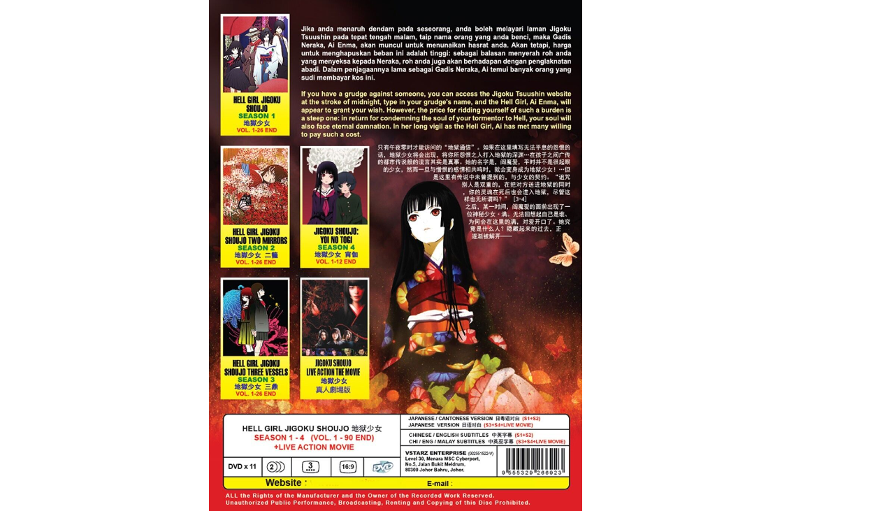 Hell Girl Jigoku Shoujo Season 1-4 + Live Action Movie DVD [Anime] [English Sub]