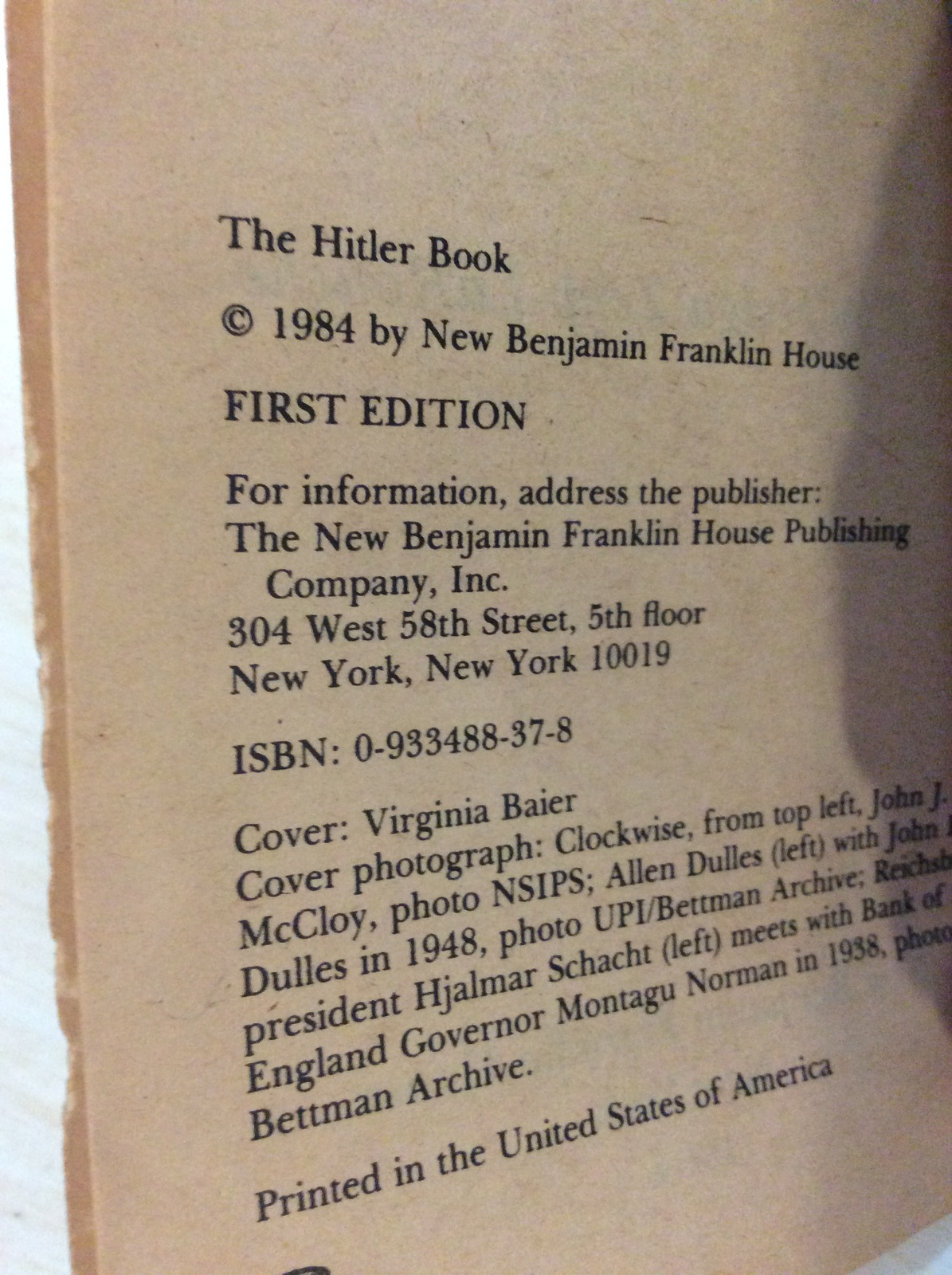 THE HITLER BOOK by the SCHILLER INSTITUTE