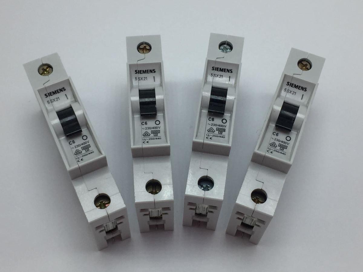 Siemens 5SX21-C6 1-Pole Circuit Breaker, 230-400V 6Amp Lot of 4