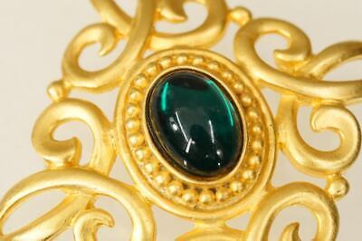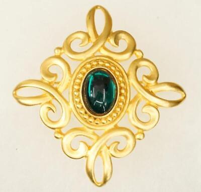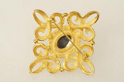 Vintage Costume Jewelry Gold Tone Metal Knotwork Twist Glass Cab Brooch Pin - measures 2.5" by 2-3/8". Would be beautiful as a kilt or cloak brooch. No smoke or pet odors.