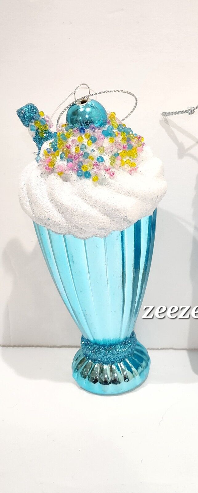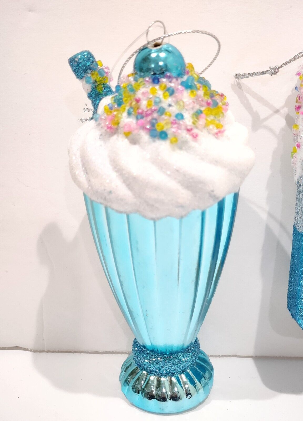 Christmas Sprinkles Candy Land Aqua Blue Milkshake Tree Ornament 5.25"