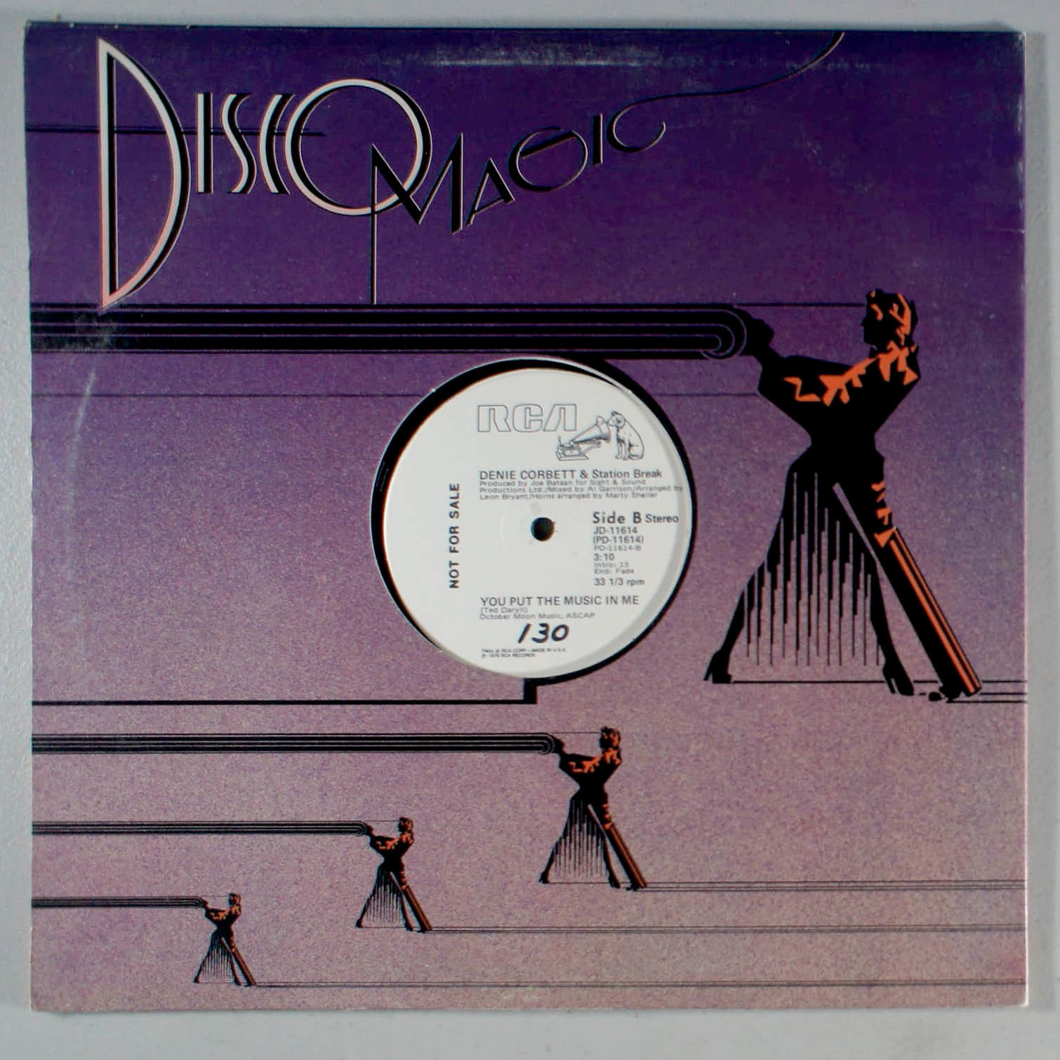 WHITE-LABEL PROMO. Vinyl plays nicely (play-graded). 12" Single. "Disco Magic" promo cover looks good; light scuffing and creasing (front/back); small area of sticker residue near front top right. Inner-sleeve is original (generic white); center cur-out shows wear. Spine is easy-to-read with wear. Minor shelf-wear along top/bottom-edge and corners. Opening is crisp with signs of light use and divots. BPM ("130") written on one side of label. (Not a cut-out.)