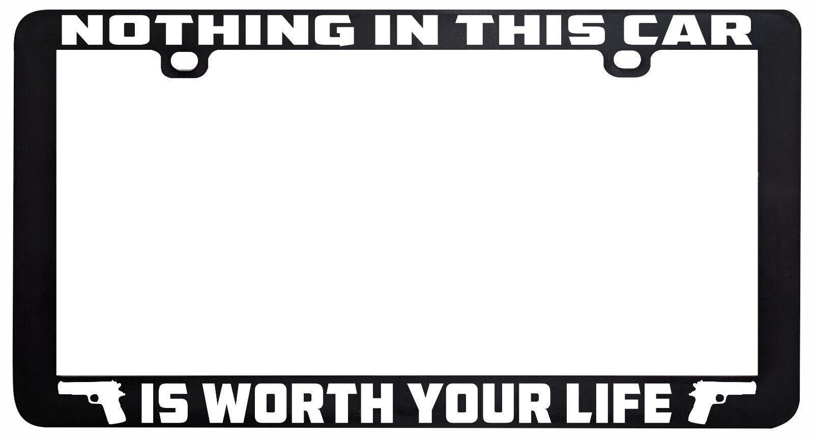 NOTHING IN THIS CAR IS WORTH YOUR LIFE PROTECTED BY GUN LICENSE PLATE FRAME