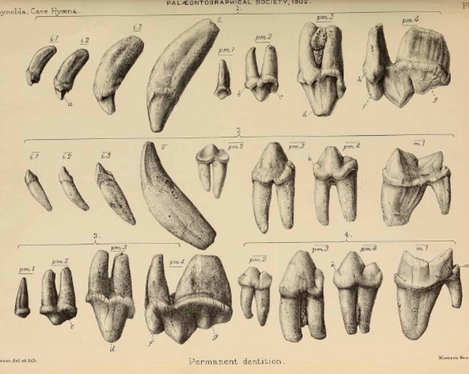 It first appeared in Europe around 500,000 years ago and lived up to the close of the last European Ice Age. Prehistoric European cave paintings have been found depicting these beasts as having spots. Certainly feared and avoided at all costs. The closest living relative is the African Spotted Hyena. Specimen remains discovered in Great Britain and Alpine regions indicate these locations were home to the largest of the Giant Cave Hyenas. It stood close to 40 inches tall at the shoulders, weight: 175-285 pounds. Nocturnal, raising their young in the caves. They hunted in packs of 10-25 hyenas, and scavenged on carrion as opportunists. Cave floor deposits where these beasts lived indicated a varied diet of deer, boar, horse bison, woolly mammals and woolly rhino. Some deposits also produced partially eaten Neanderthal remains indicating they ate humans.