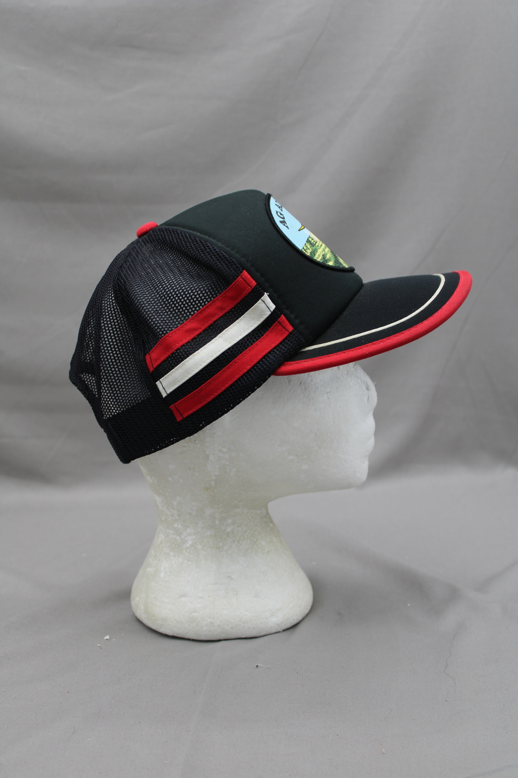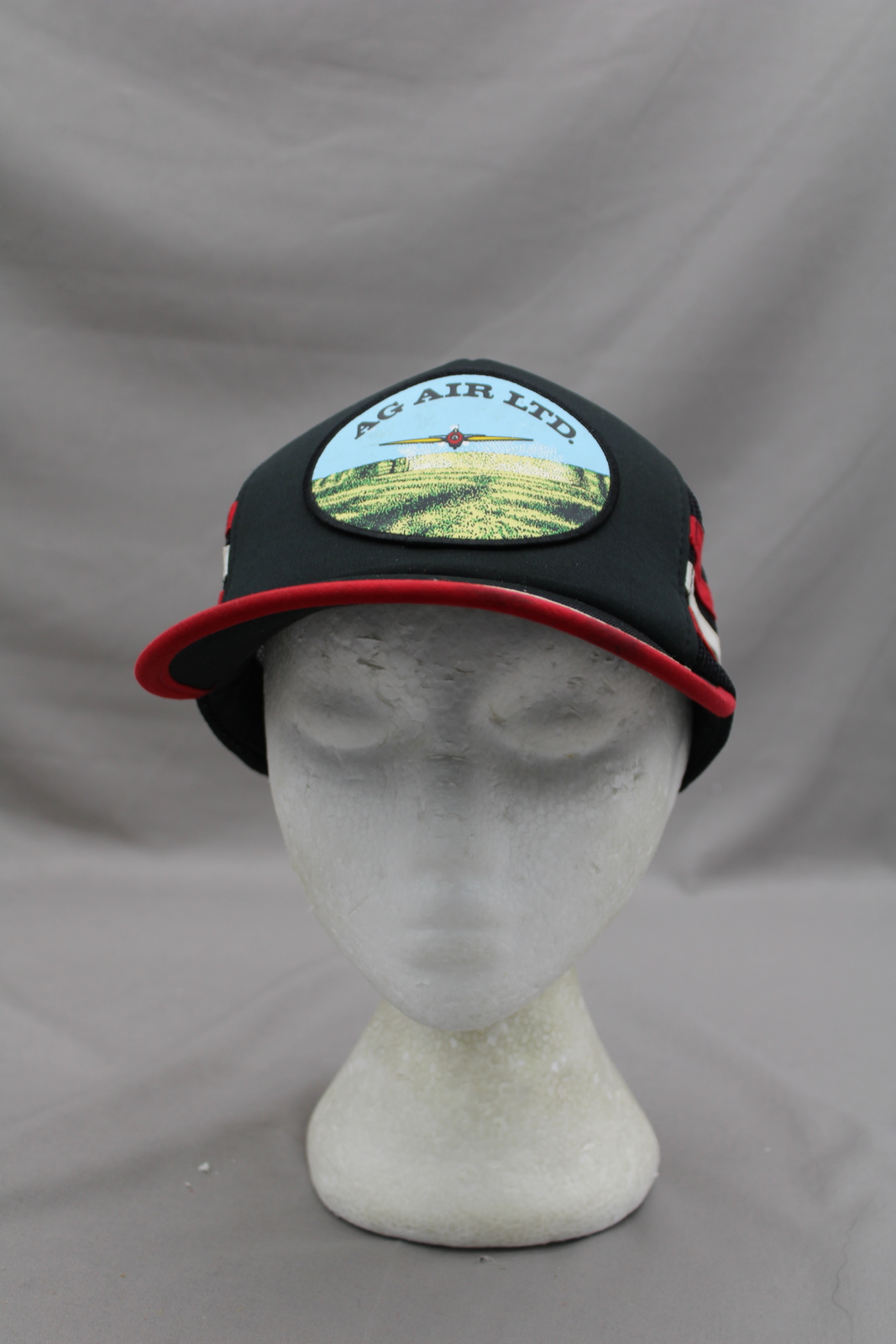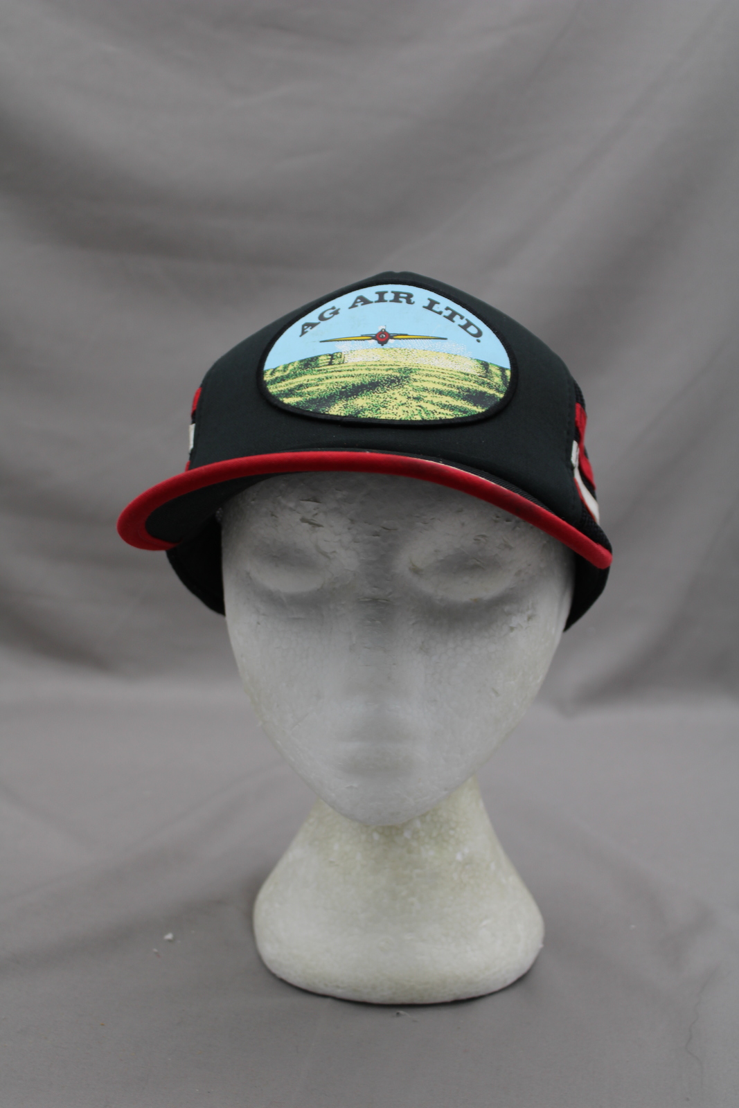Up for sale is a vintage patched trucker hat. It has a black base colour with two red and one white stripe crested on each side of the hat. The front of the hat has a huge screened patch for Ag Air ltd crested on. What a great vintage hat do not miss out on it.