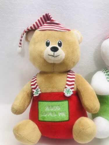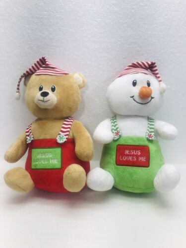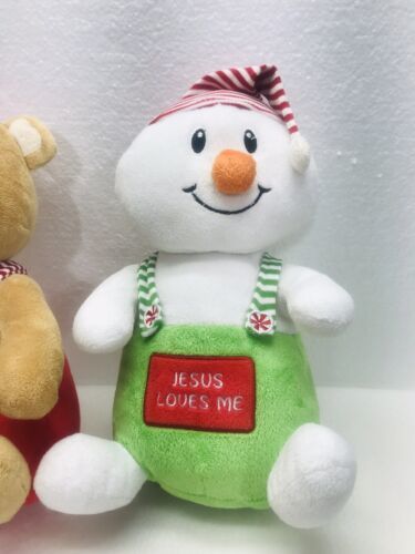 Christmas Teddy And Bear Snowman 11" Plush Jesus Loves Me Animal Hat Plush
