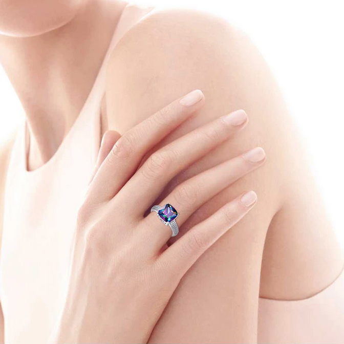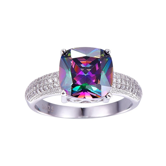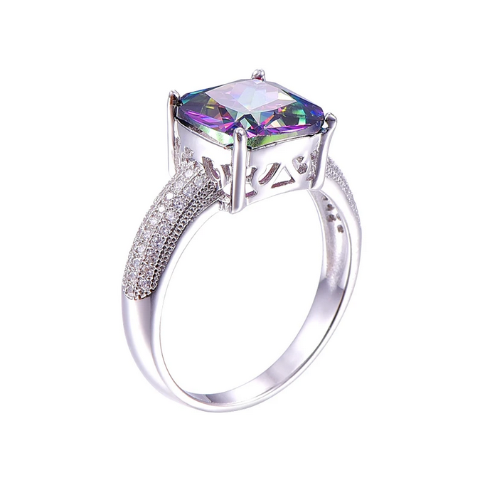 Luxury S925 Sterling Silver 5.6CT Rainbow Fire Mystic Topaz Gemstone Ring