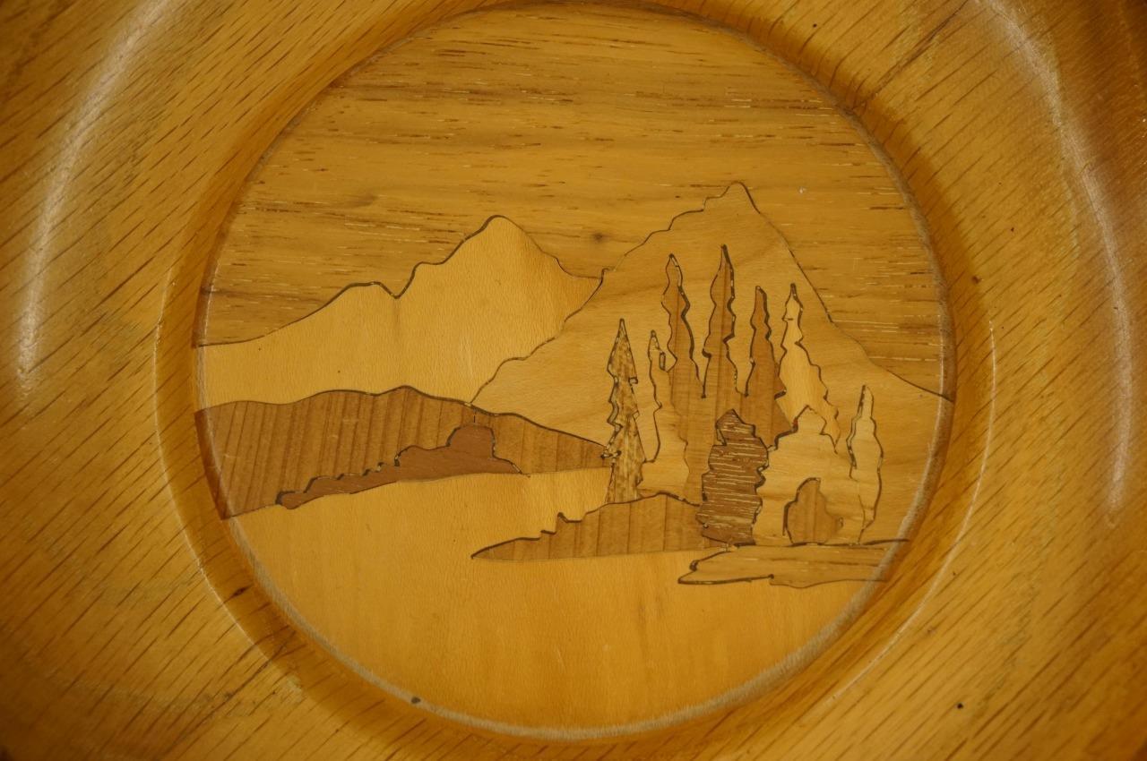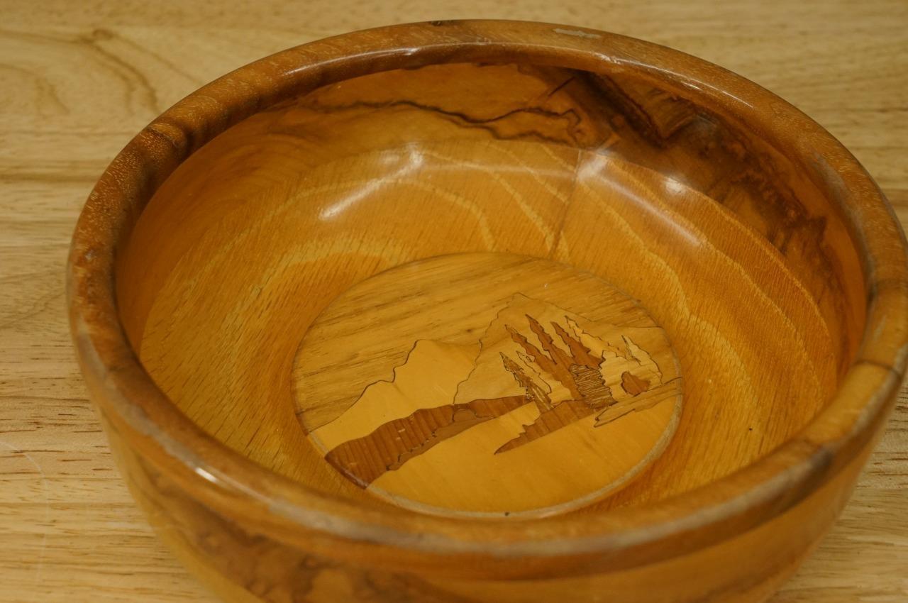 Vintage MCM Mid Century Modern Wood Bowl Inlay Mountain Fir Tree Pattern