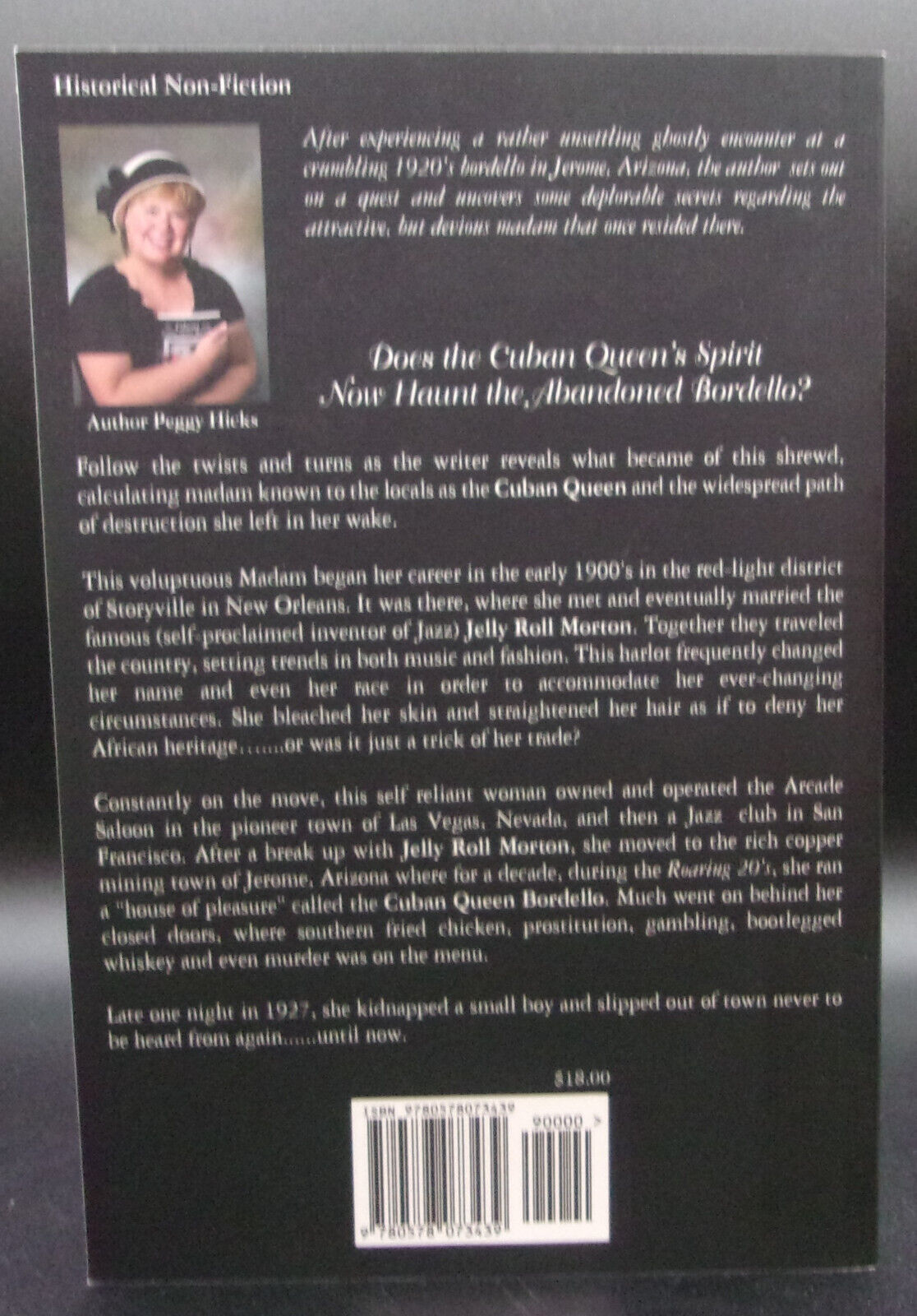 Well-researched biography, spiced with flushed-out realistic assumptions, of Bessie Johnson, who was dubbed The Cuban Queen, and of the history surrounding her life from her 1883 origins as a member of a musical family and then as a prostitute in Storyville, New Orleans, to her musical Jelly Roll Morton years, and finally her running of the famous prostitution house in Jerome, Arizona.