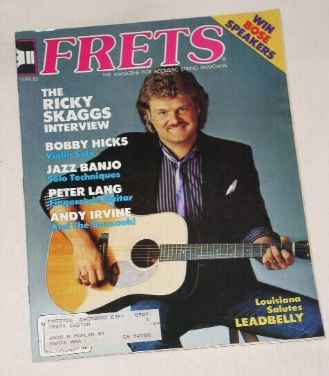 This is the March 1985 issue of "Frets" magazine. Cover story on Ricky Skaggs.