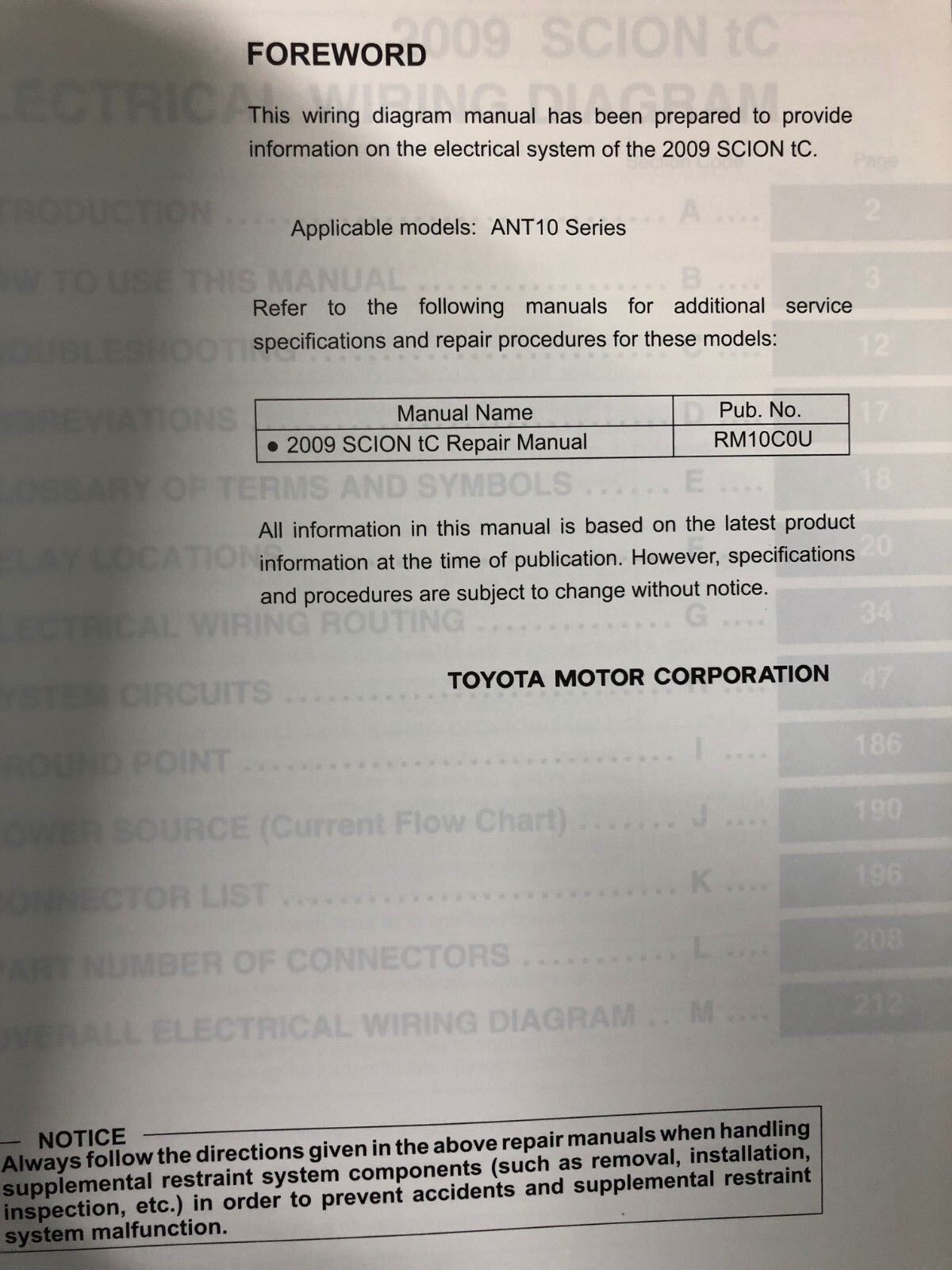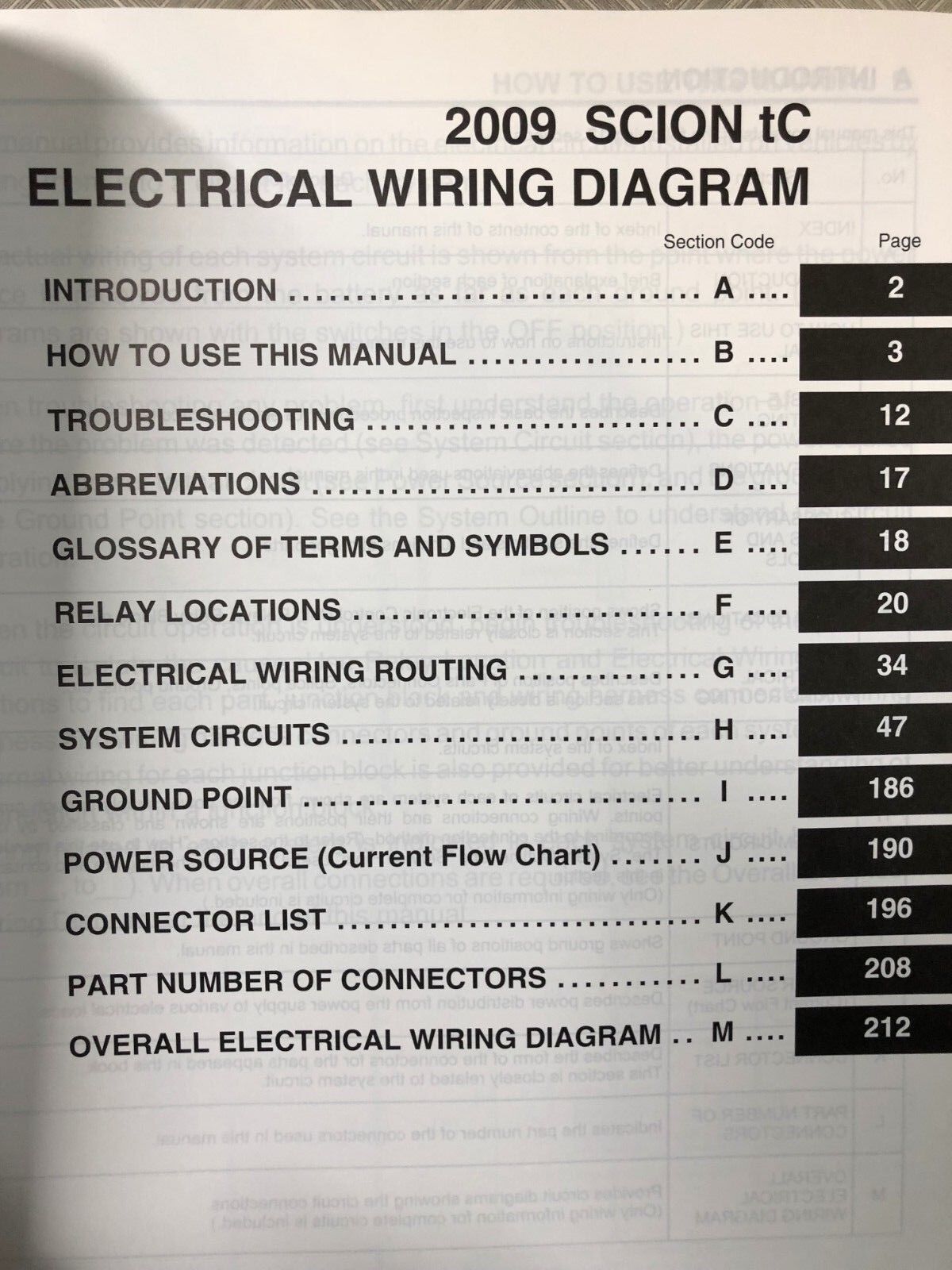 2009 TOYOTA SCION tC ELECTRICAL WIRING DIAGRAM MANUAL