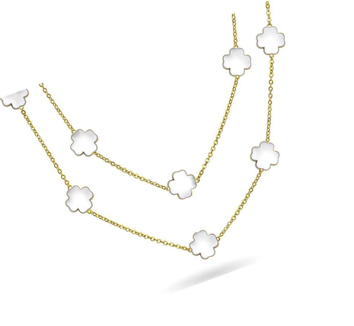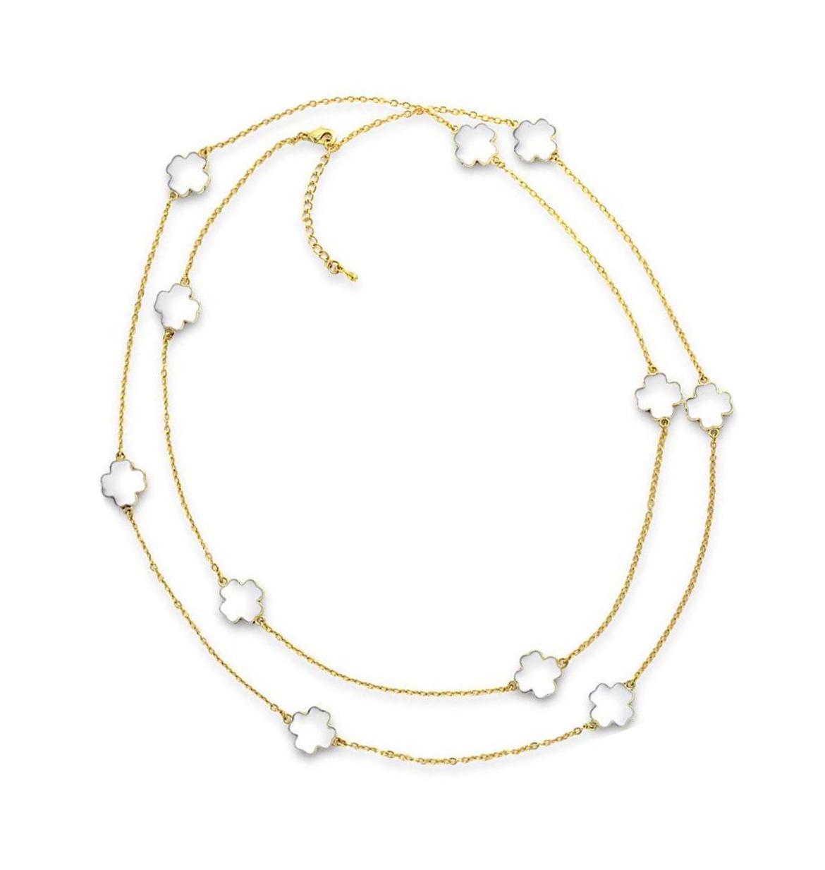White Pink Aqua Blue Black Enamel Flower Long Silver Or Gold