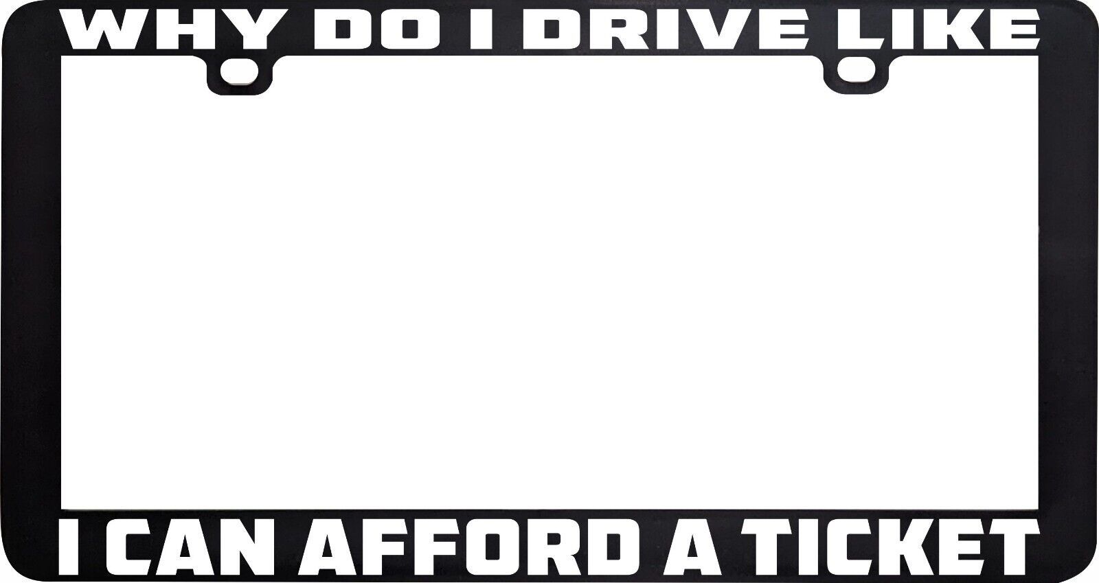 WHY DO I DRIVE LIKE I CAN AFFORD A TICKET FUNNY HUMOR LICENSE PLATE FRAME HOLDER