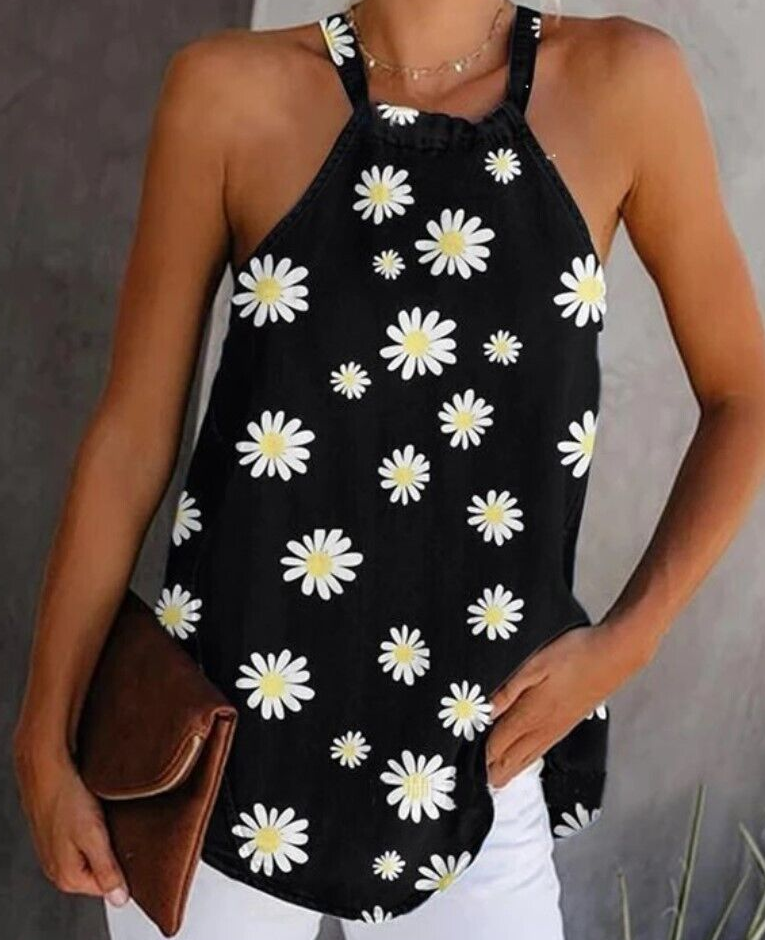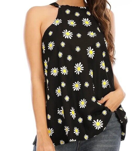 Ladies Top Size S Sexy Halter Sleeveless Daisy Print by " Luckinchic " $39 Value.