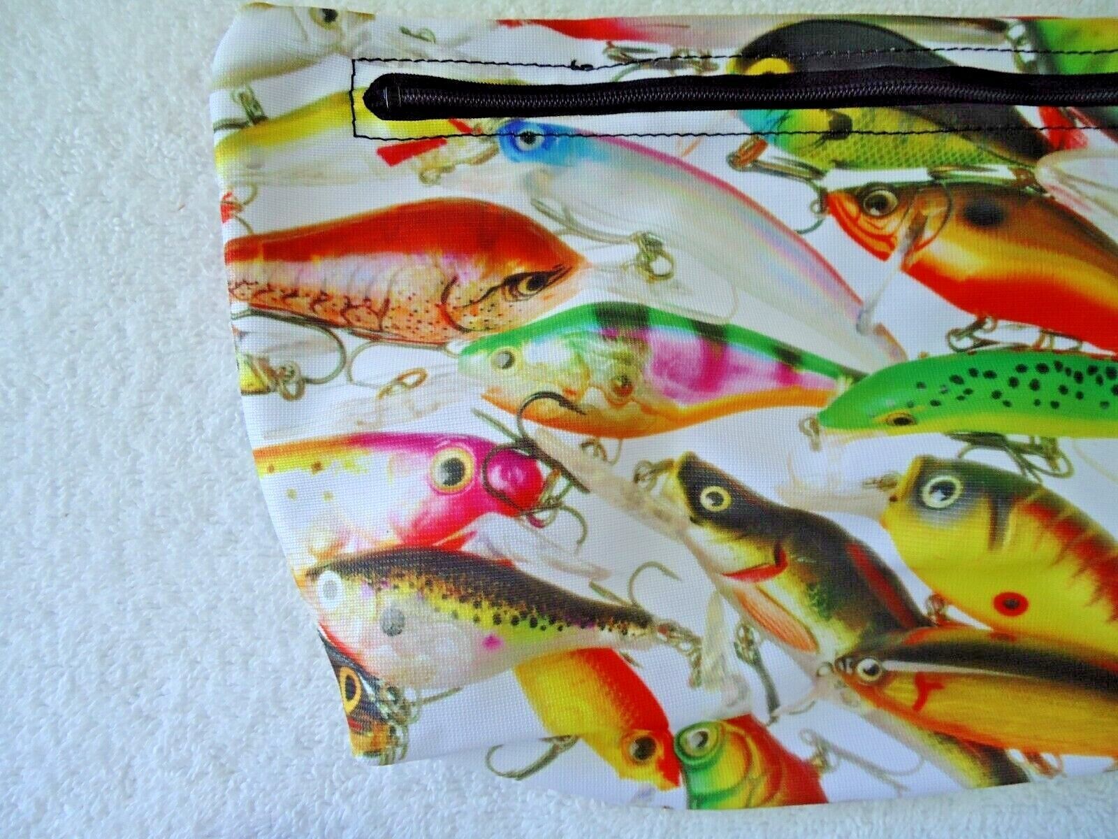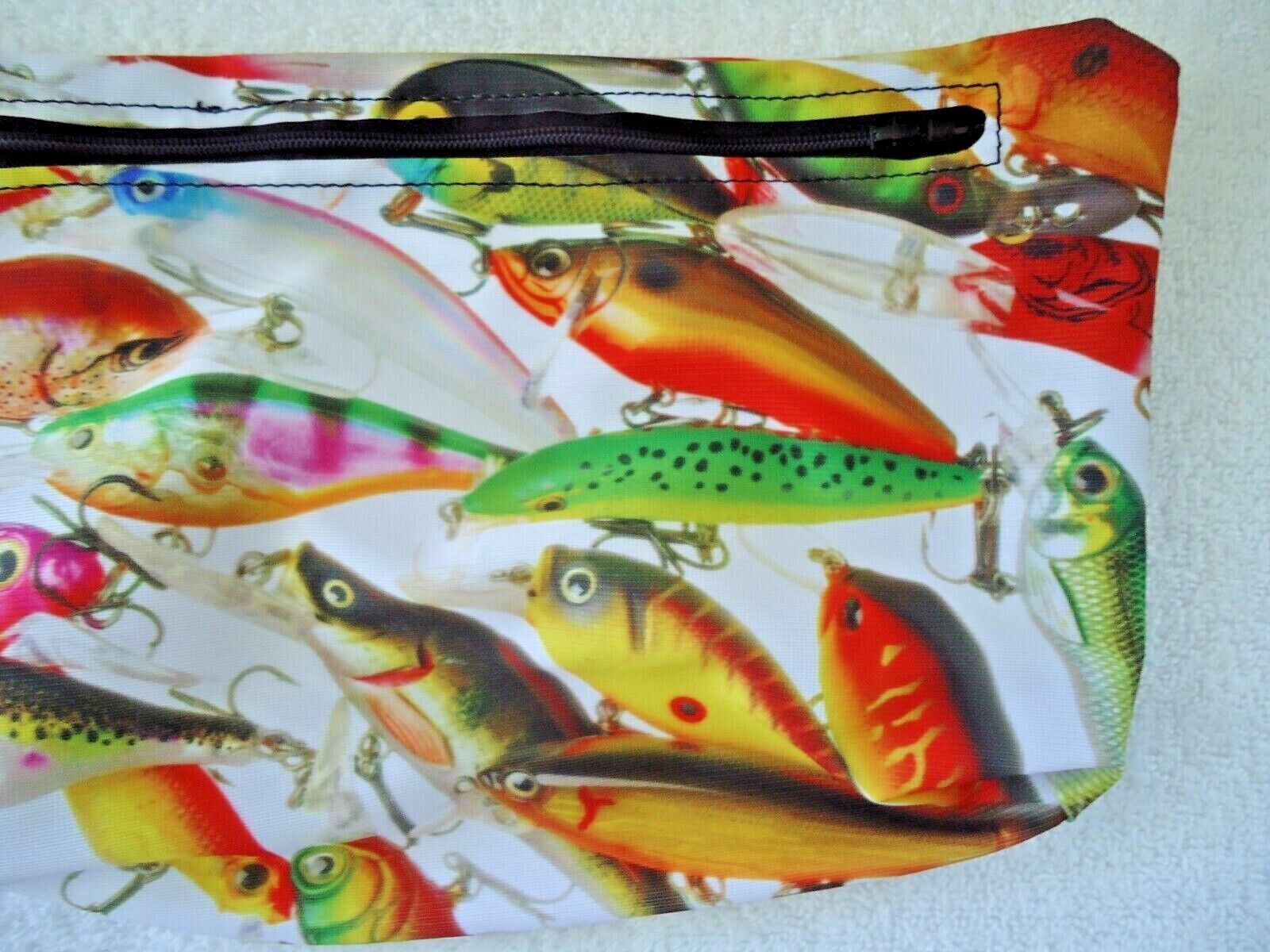 " NWOT " Axiom America Fishing Lure Themed Zippered Hand Bag / Pouch