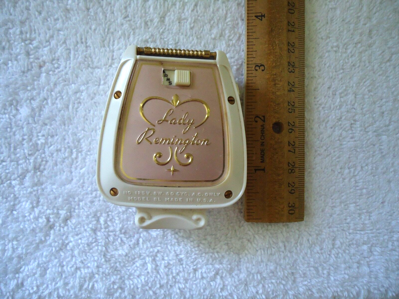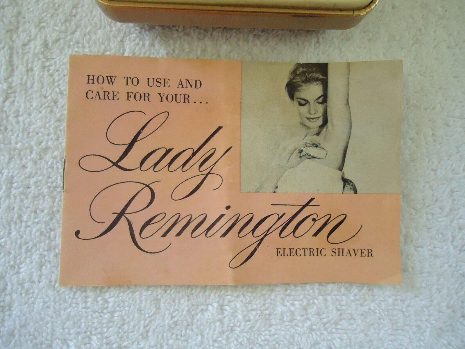 Here is a Vintage Lady Remington Electric Shaver In Case With Booklet " GREAT COLLLECTIBLE ITEM ".This is a must for any collector,or decorator wanting that vintage retro look.If you have any concerns or questions about this item(s) please ask before bidding / purchasing because this item(s) is being SOLD AS IS.Thank You.-(PC110)