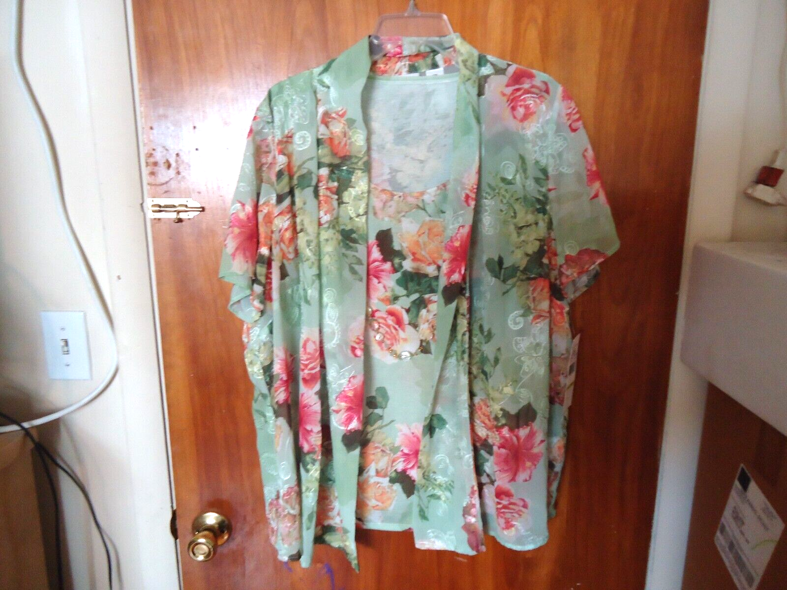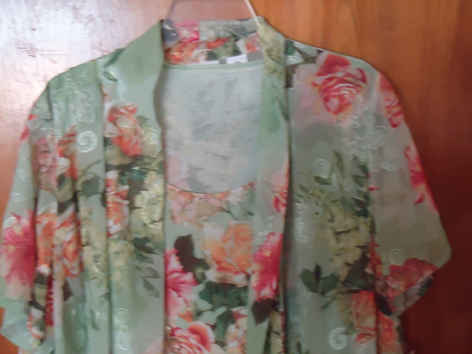 " NWT " Alfred Dunner Size 18W Multi Color Floral 2 Piece Top Set Attached Neckl