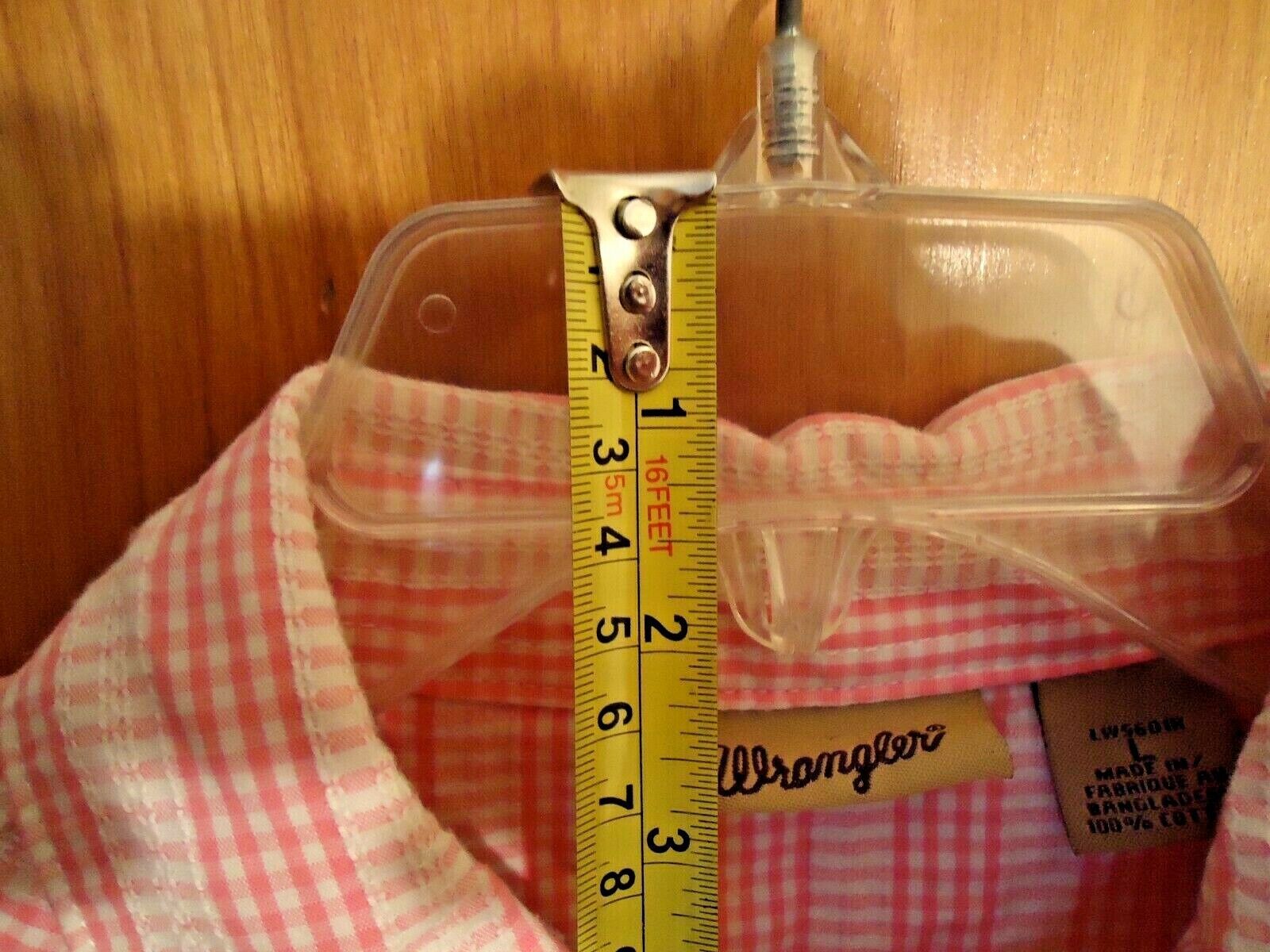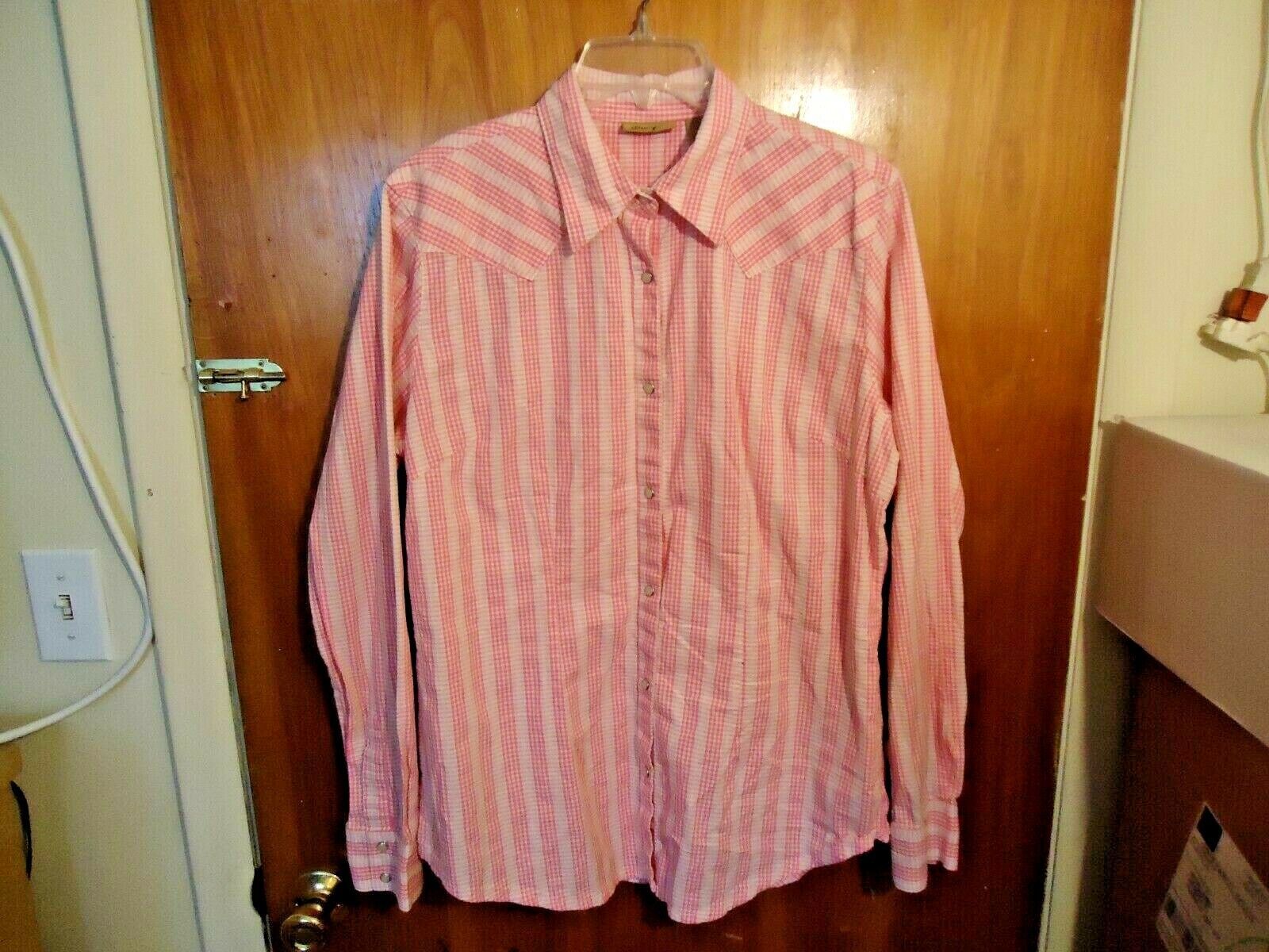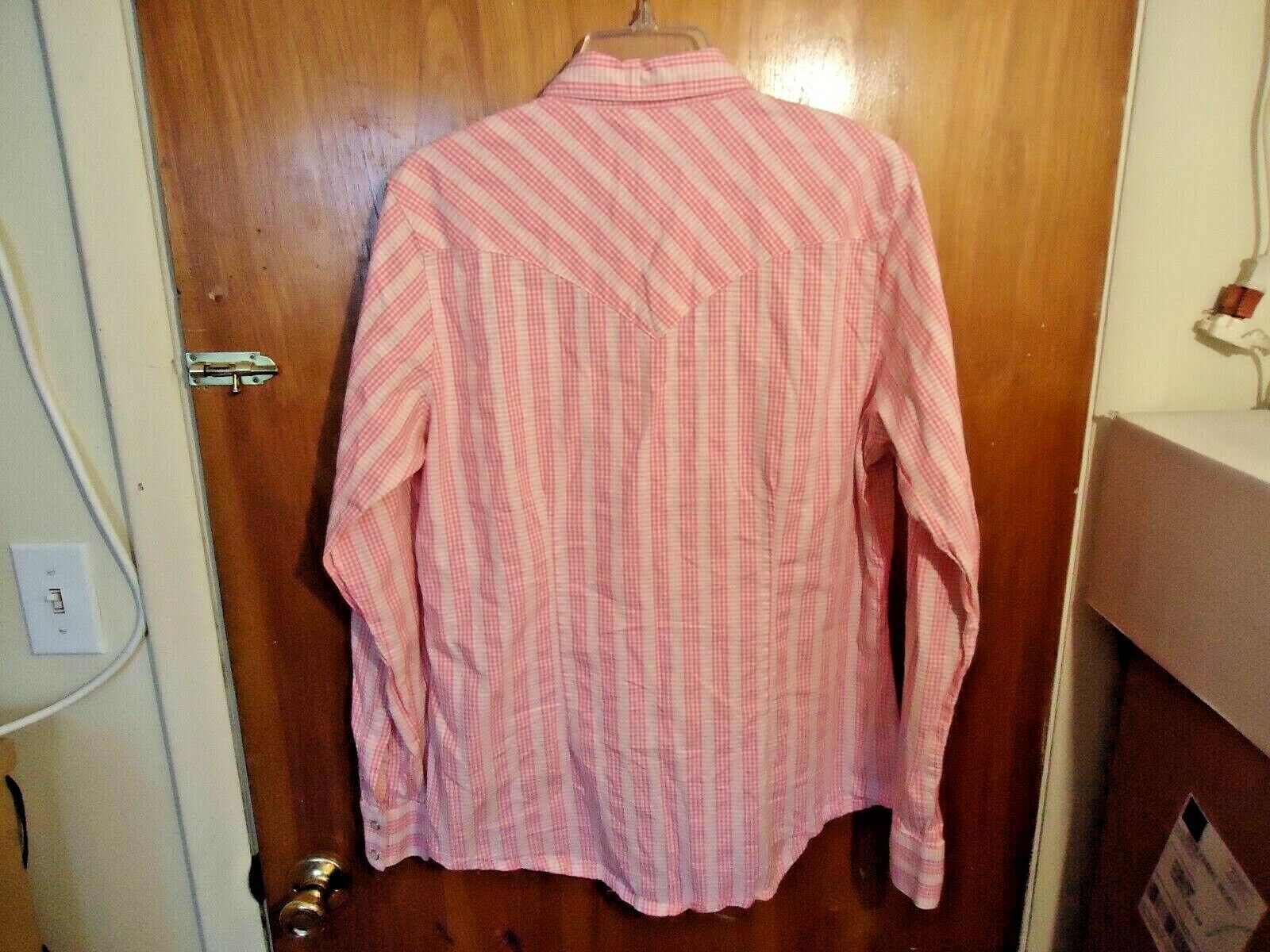Here is a Wrangler Size L Pink White Long Sleeve Check / Striped Snap Down Shirt " BEAUTIFUL SHIRT ".The pics do not do this item(s) justice.If you have any concerns or questions about this item(s) please ask before bidding / purchasing this item(s).Thank You.-(CL8)