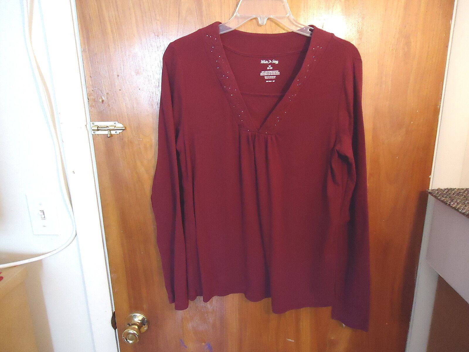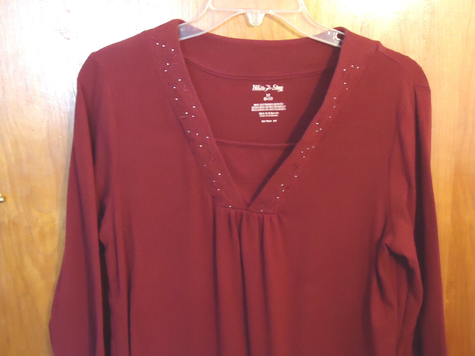 Womens White Stag Size M ( 8-10) Burgundy Long Sleeve Top With Beads Neckline