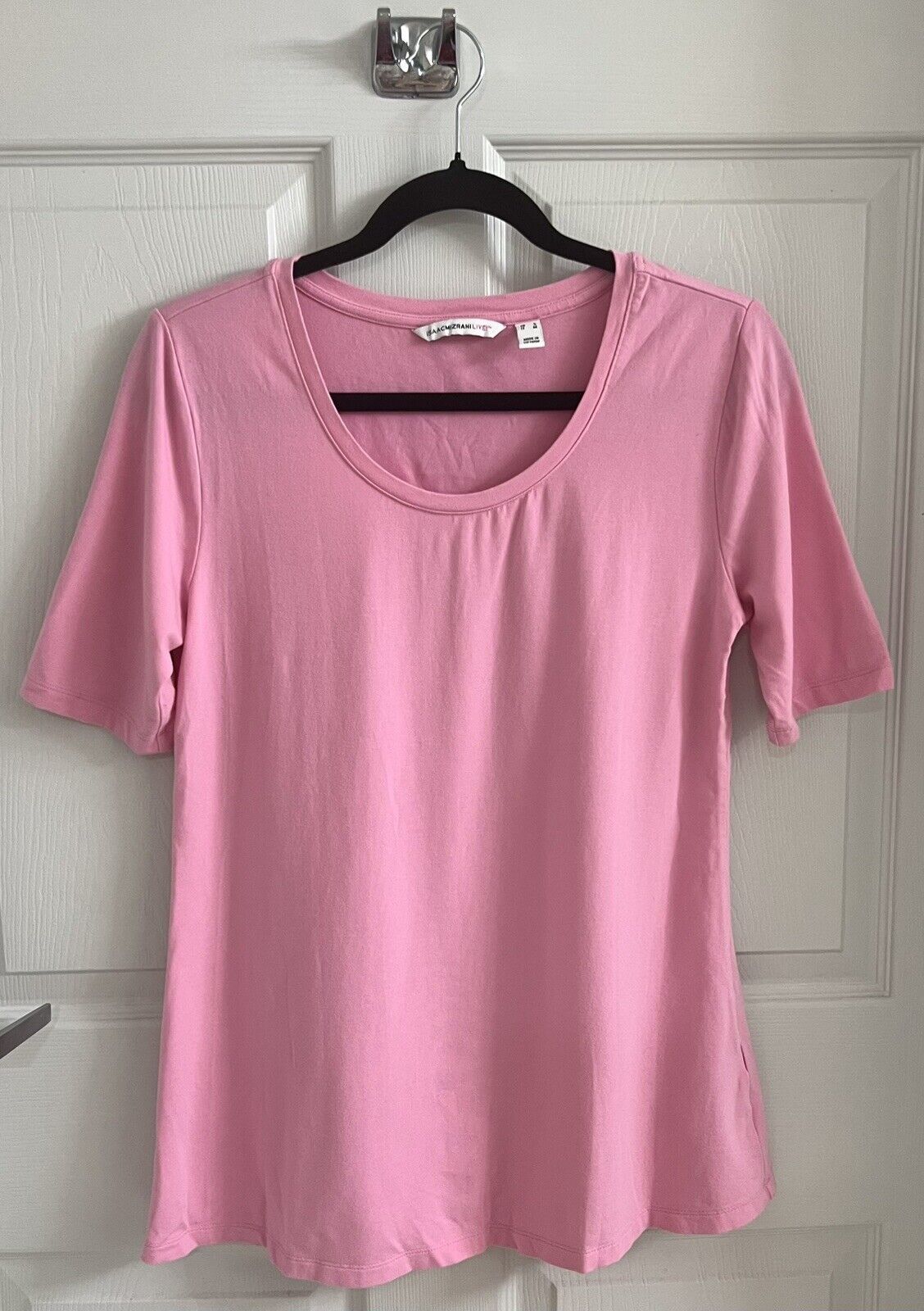 Isaac Mizrahi Top Size Small Bubblegum Pink Scoop Neck Solid Stretch Tee Shirt