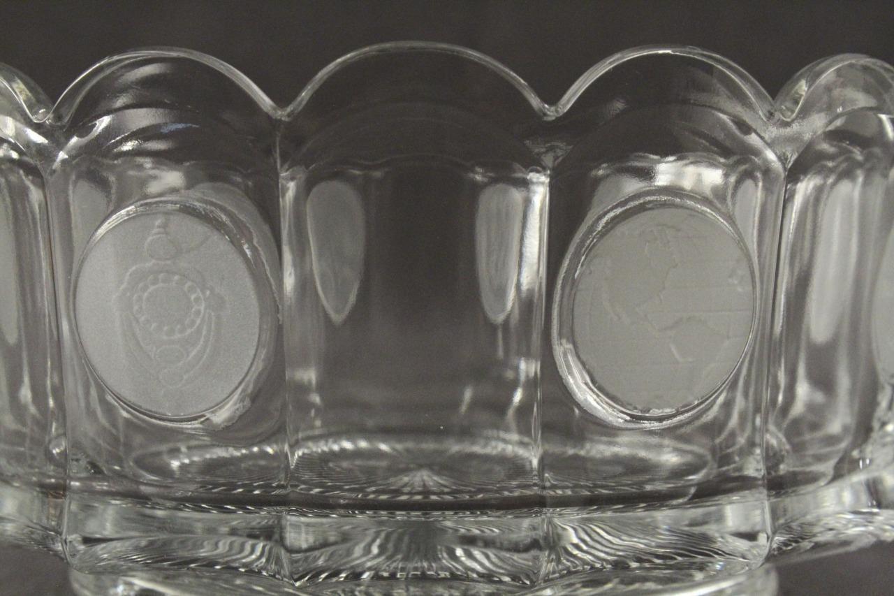 Vintage MCM Mid Century Modern FOSTORIA Coin Glass AVON Award Round Bowl 7"