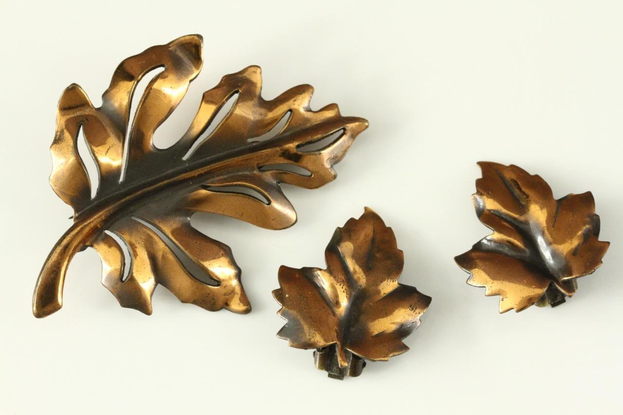Vintage Jewelry Renoir Matisse MCM Mid Century Copper LEAF Brooch Pin & Earrings