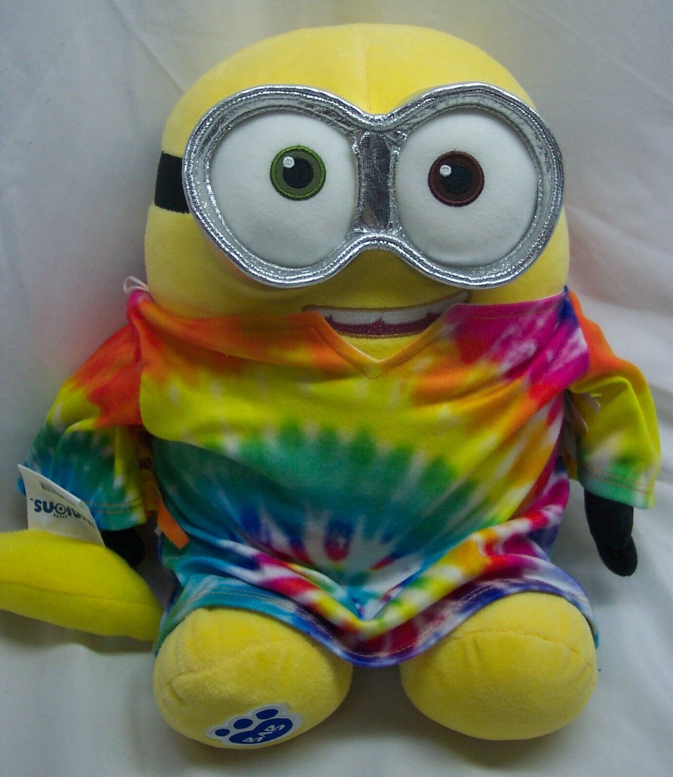 This is a Despicable Me BOB MINION IN TYE DYE SHIRT Plush Stuffed Animal Toy. Made for The Build A Bear Workshop. CUTE SOFT. It is 9 inches tall. It is in great condition. It is CLEAN. There are no tears, stains or defects. Press the blue paw on his foot and he says stuff in minion language. Combine auctions to save on shipping. Please contact me if you need to make other payment arrangements. AG