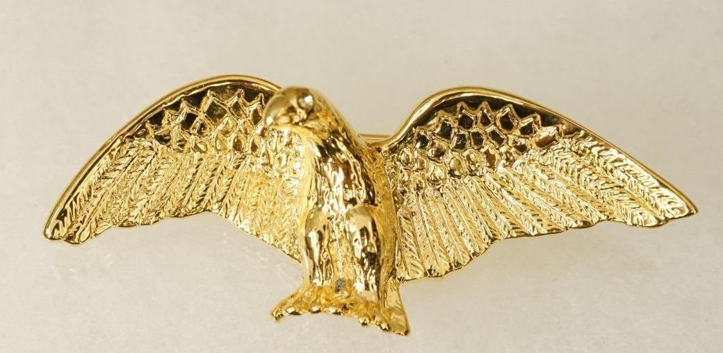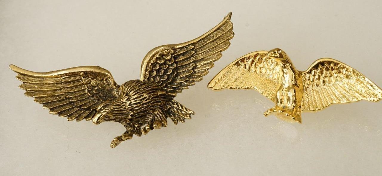 Vintage Costume Jewelry Gold Tone Metal Lot 2 Eagle Bird Patriotic Brooch Pins