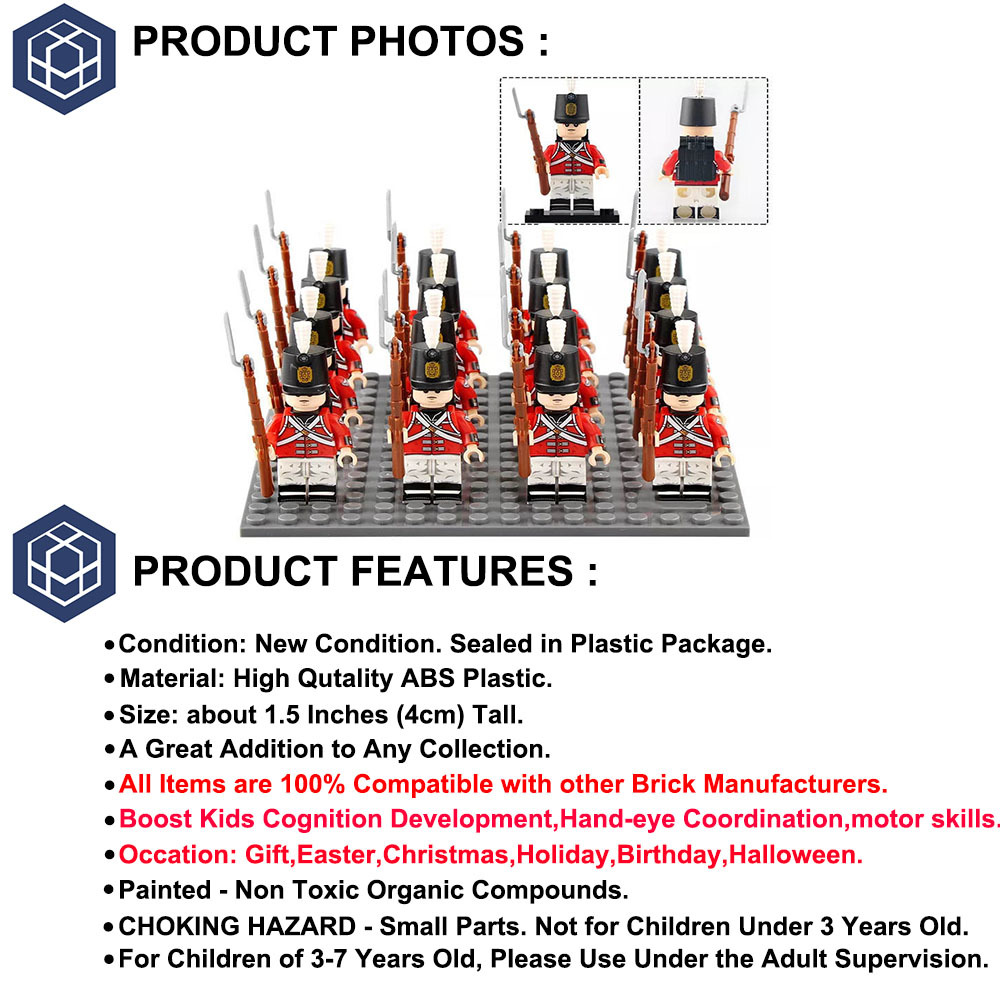 16pcs British Fusilier Army Soliders Custom Napoleonic Wars Minifigure Toys